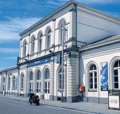 Hoewel bijna alle fabrieken inmiddels zijn gesloten – slechts een kleine vestiging van Union Minière is gebleven – heb je als je rond Overpelt toert nog steeds het idee dat je in een zand- en duinenlandschap rijdt. Wat verder rij ik in Neerpelt langs de ‘statie’ waar je ’s morgens om 4.34 uur nog steeds op een dieselboemeltrein naar Antwerpen kunt stappen. Het is een mooi neoclassicistisch gebouw, met witte pilasters en geel gepleisterde muren… en natuurlijk zo’n gezellig stationscafé. In 1960 sloot de NMBS de lijn tussen Mol en Neerpelt om ze in 1978 weer te openen. Neerpelt is dus een eindstation. Wel wordt het aansluitende stuk tot het Nederlandse Budel en Weert enkele malen per week voor ertsvervoer naar de zinkfabriek Pasminco gebruikt.