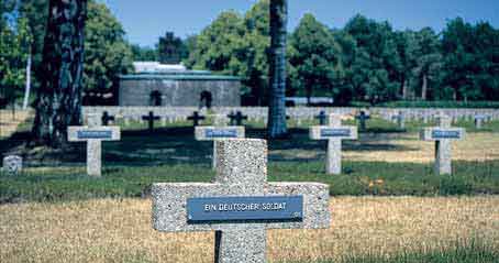 De volgende halte aan de IJzeren Rijn is Geel. Deze stad staat sinds mensenheugenis bekend om de opvang en verzorging van geestelijk gehandicapten, waarvan een groot deel wordt verzorgd en opgenomen in plaatselijke gezinnen. Het hoe en waarom van deze traditie kun je aanschouwen in het Sint Dimpna- en Gasthuismuseum. Je vindt dit museum (open april t/m september; woensdag, donderdag en zondag van 14.00 tot 17.00 uur) op de weg naar Mol. In het centrum van Mol, een anoniem stadje dat bij de Belgen vooral bekend staat om zijn grote recreatieplassen en campings, stuur ik de Honda richting Balen en laat de IJzeren Rijn even alleen achter. Via het gehucht Kerkhoven bereik ik na een tijdje het grootste Duitse Soldatenfriedhof van de Tweede Wereldoorlog.