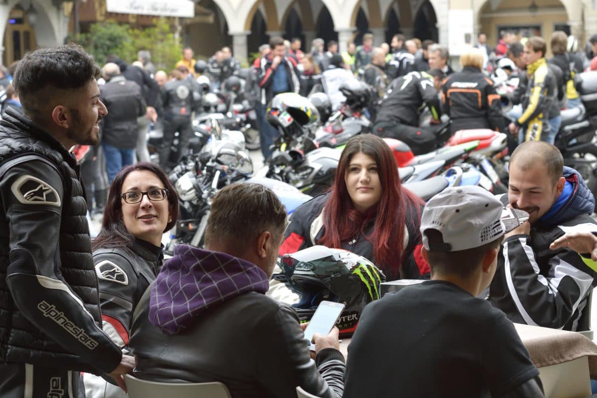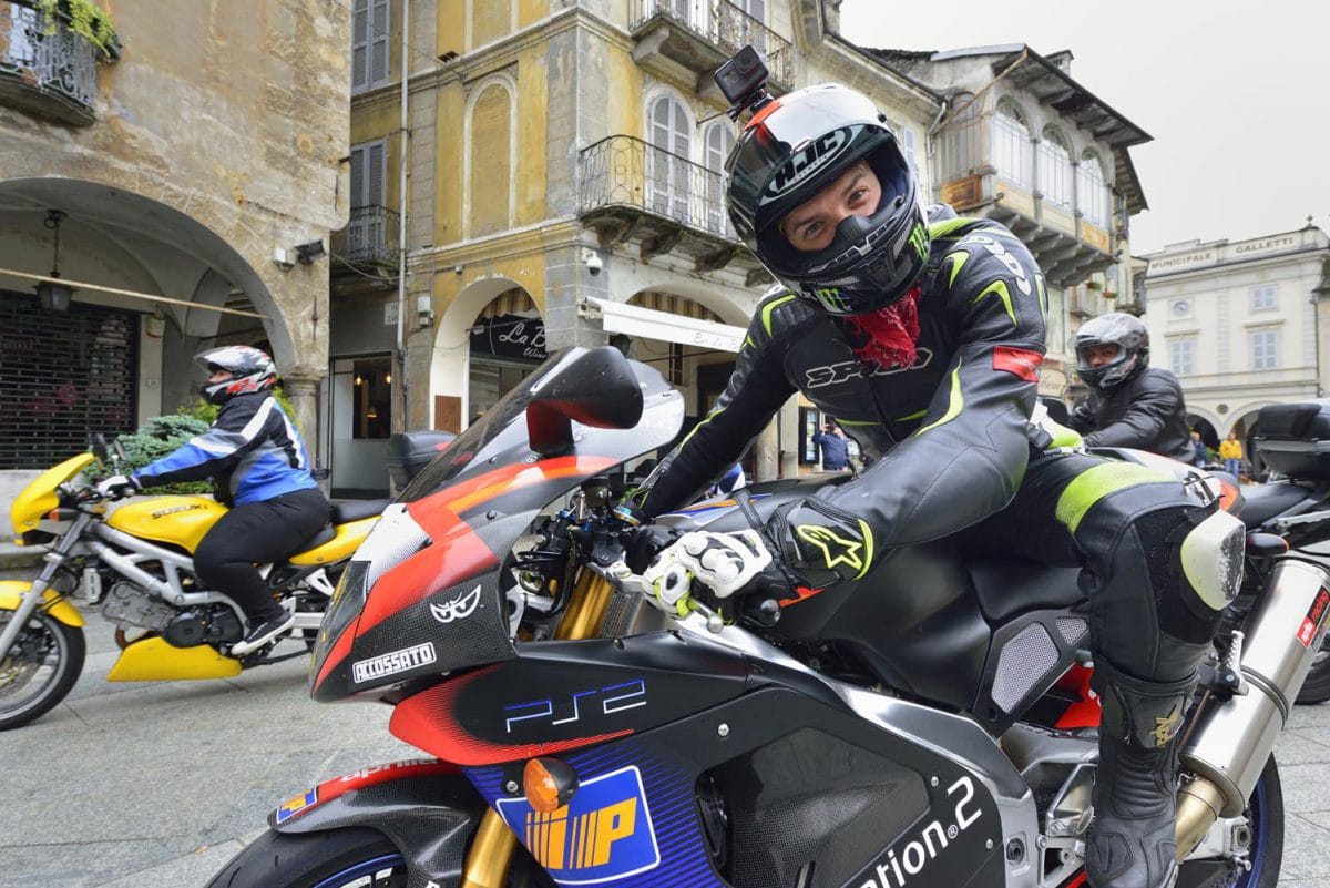 Dat geeft dan weer aanleiding voor een heel ander soort recordpoging, namelijk de vraag: hoeveel motorfietsen passen er dit jaar weer op het middeleeuwse marktplein? Afhankelijk van het weer zijn dat er meer dan 200, van afgeragde Africa Twins tot hoogglans gepolijste scooters en racers en zelfs bonkige V-Rods. Daarbij de vraag: hoeveel decibel kan het stucwerk van de historische façades aan? En met welke snelheid de snelste van dit bonte gezelschap na de afspraak in Domodossola doorrijdt naar het Moto Benedizione, een motorfietszegening die om elf uur op de Simplonpas in het naburige Zwitserland wordt gehouden. Daarbij zijn doorgaans tot 4.000 machines aanwezig. Tja, dat weet alleen de ‘racedirectie’. Daarbij voor de volledigheid: het wereldrecord voor motorfietsen op een circuit is in handen van Andrea Iannone, wiens Ducati in Mugello 349,6 km/u haalde.