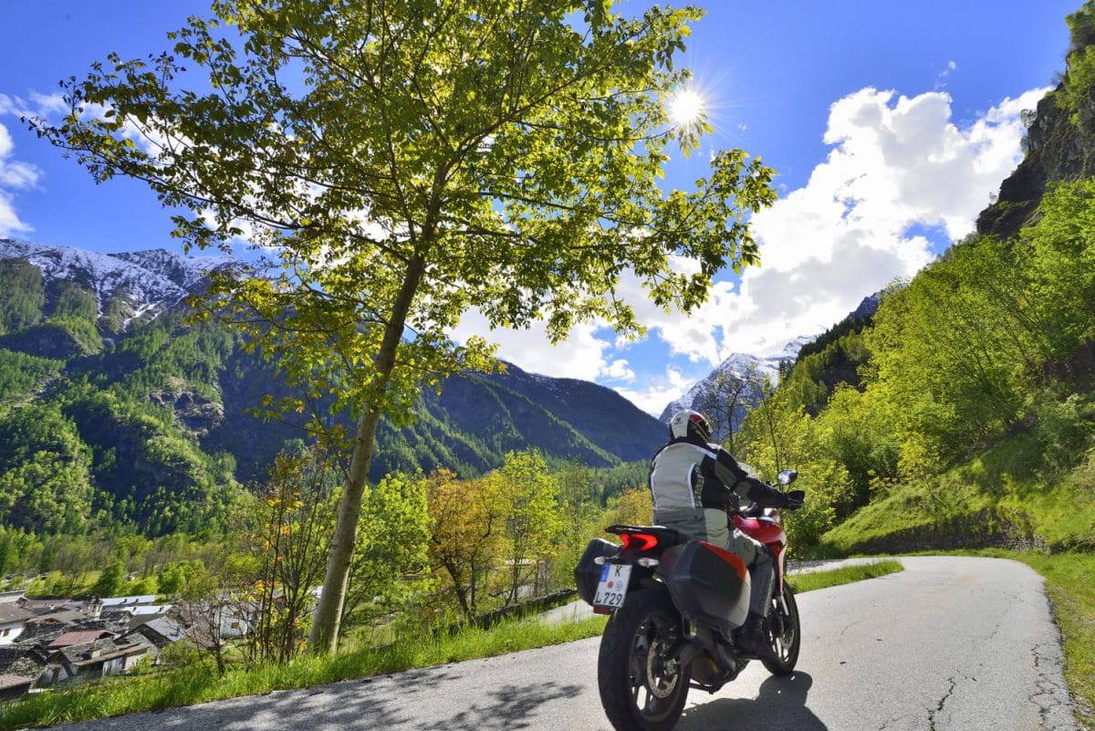 Vanaf Val d’Osta buigen vier zijdalen af als takken van een boom. Ze voeren als bochtige vertakkingen ver in en op het gebergte van de noordelijke Piemonte. Wie het daar te rustig vindt, kan afdalen naar de pulserende oevers van het Lago Maggiore. De route die wij in twee dagen reden, is goed voor ongeveer 450 kilometer.