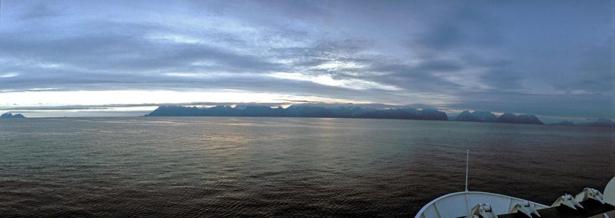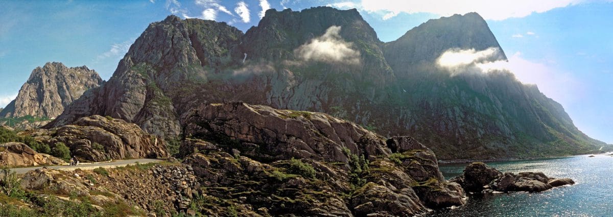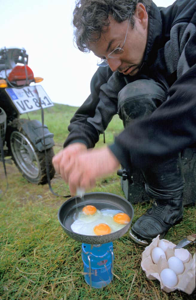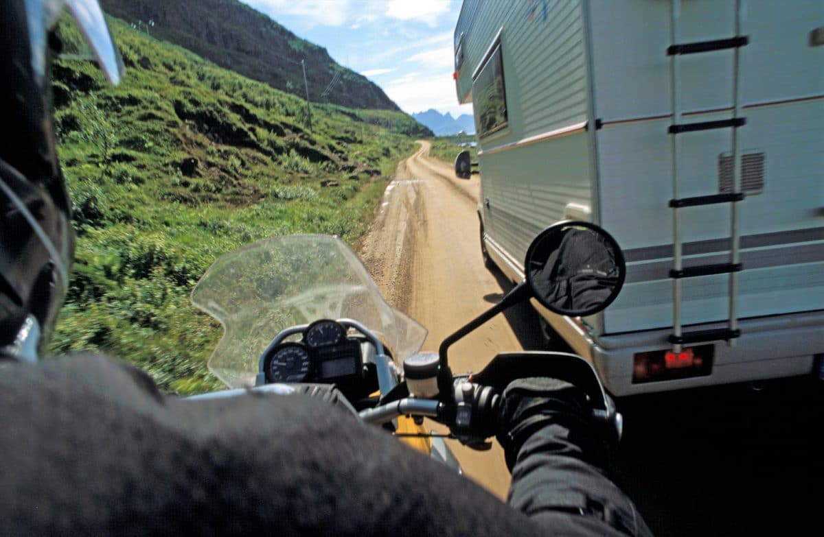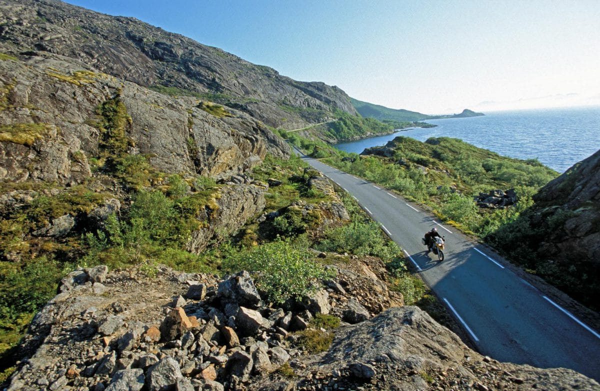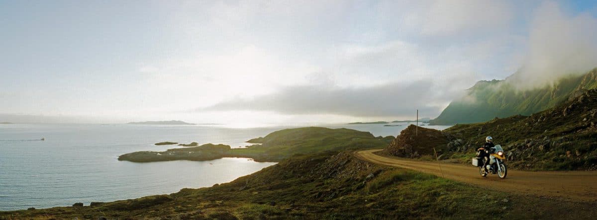 Het einde-van-de-wereld sfeertje wordt stevig onderstreept door het zware donkere wolkendek waar nog maar een enkel lichtstraaltje doorheen prikt. Dat restje licht blikkert op de loodgrijze golven van de van verraderlijke rotsen vergeven zee. Met een bocht van 180 graden en een draai aan het gashandvat voorkomen we nog net dat de lokale spoken ons te pakken krijgen.