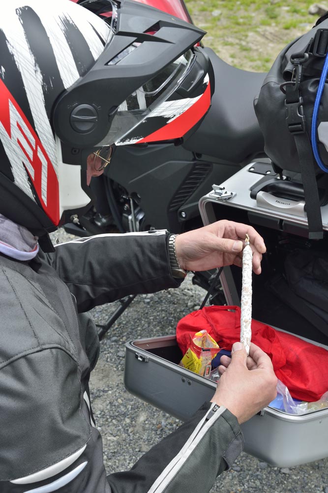 Gretig pakken we hem uit. Ik spring erop en rijdt mijn allereerste meters op Noordpoolgebied. Nog nooit kwam een geel kenteken, een Yamaha Super Ténéré of redactielid zo noordelijk. Er welt iets plechtstatigs in me op. ‘Voor mij is dit maar een heel klein stukje rijden,’ zeg ik, ‘but it’s a giant leap for promotorkind!’