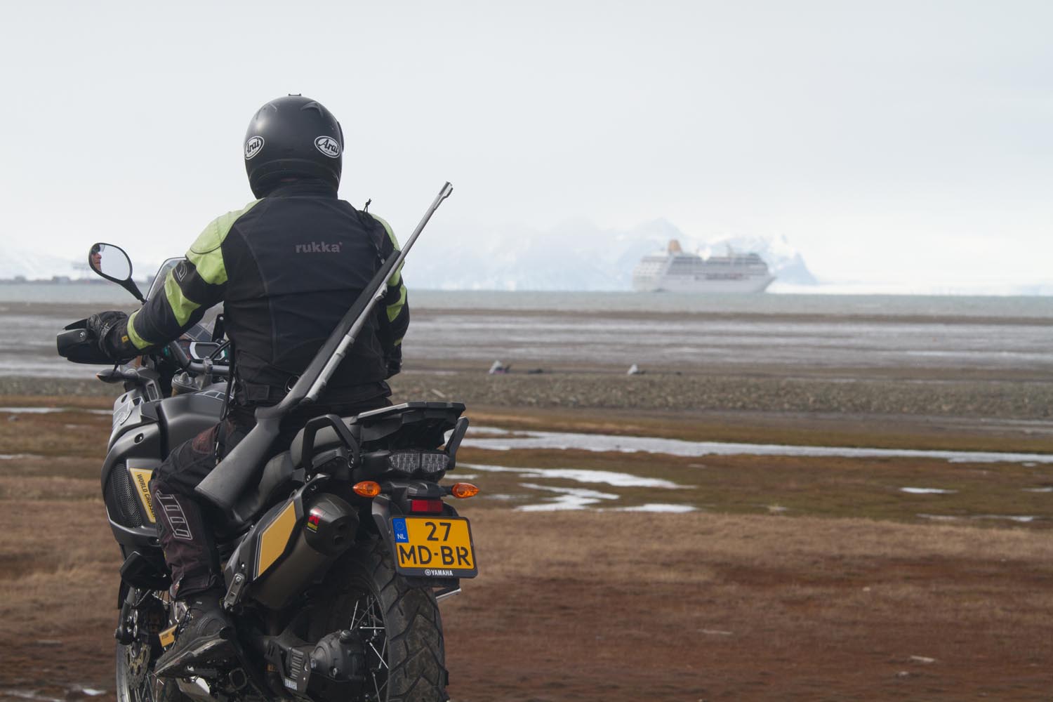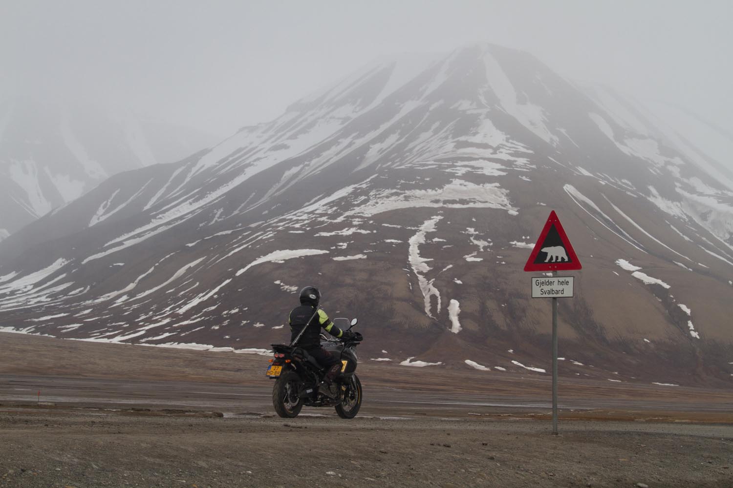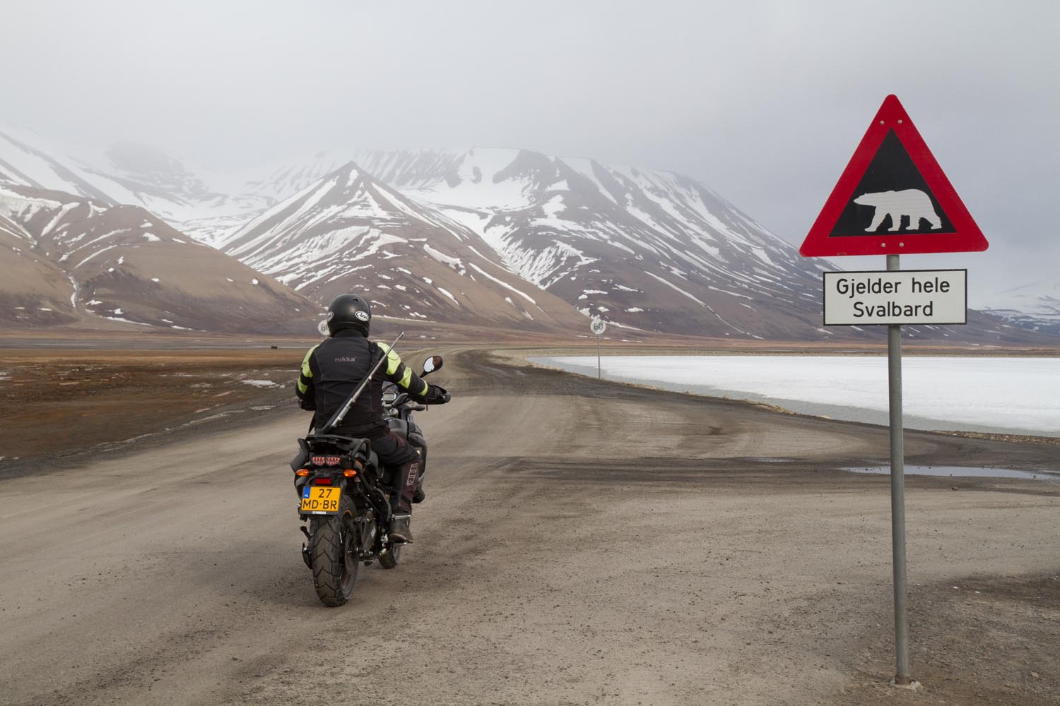 Spitsbergen heeft meer ijsberen dan inwoners. Misschien wel 5000. Dat geeft het motorrijden een ongekende dimensie. Ondanks het geweer heb ik me nog nooit zo naakt gevoeld. De kans dat je hier een ijsbeer tegenkomt, is weliswaar niet groot, want ze zijn tamelijk schuw. Maar soms ze zijn desperaat van de honger. En dan maakt het ze waarschijnlijk niet veel uit of ze nou een zeerob met of zonder Rukka-pak te grazen nemen.