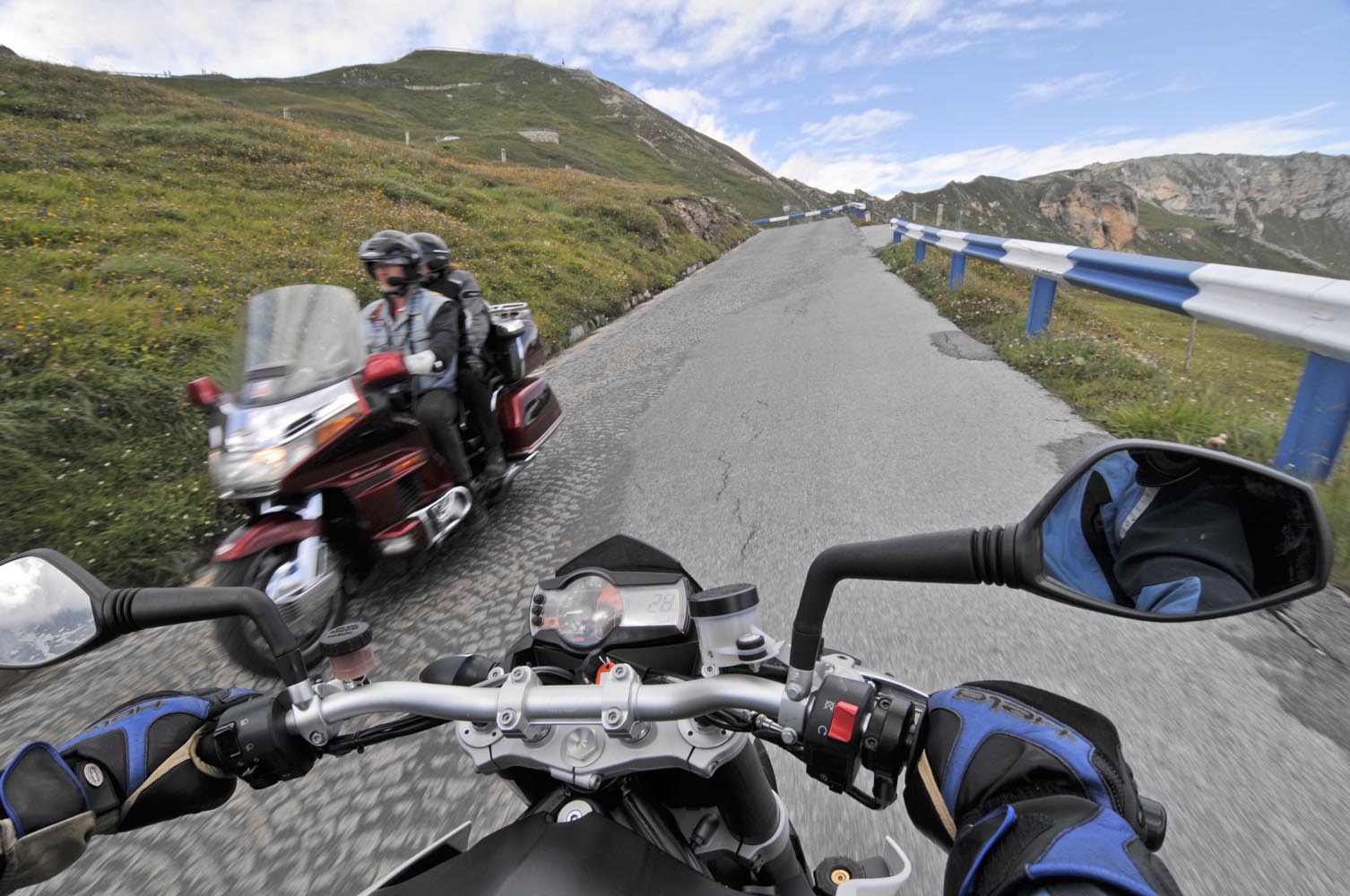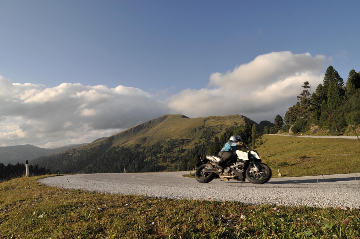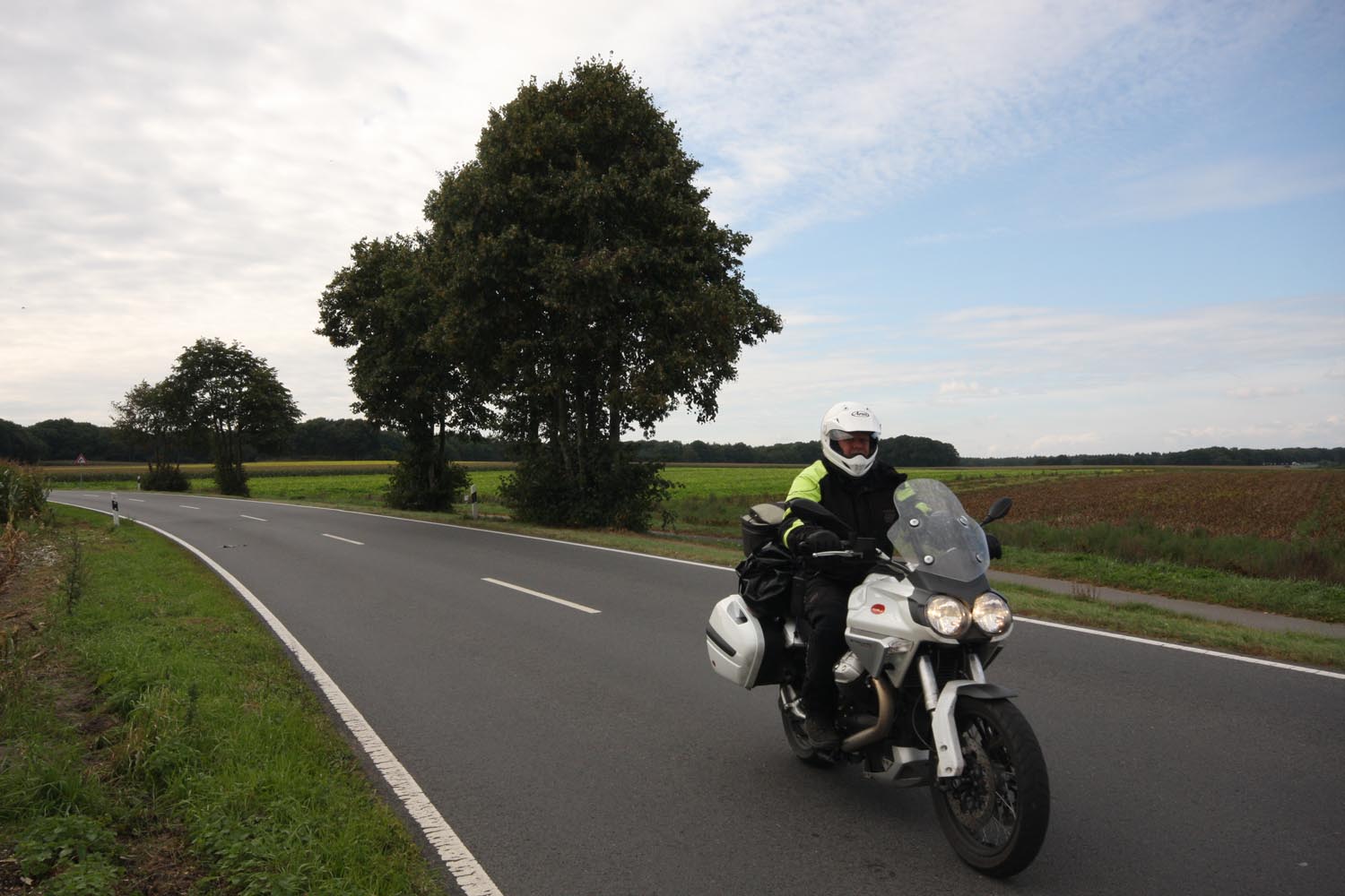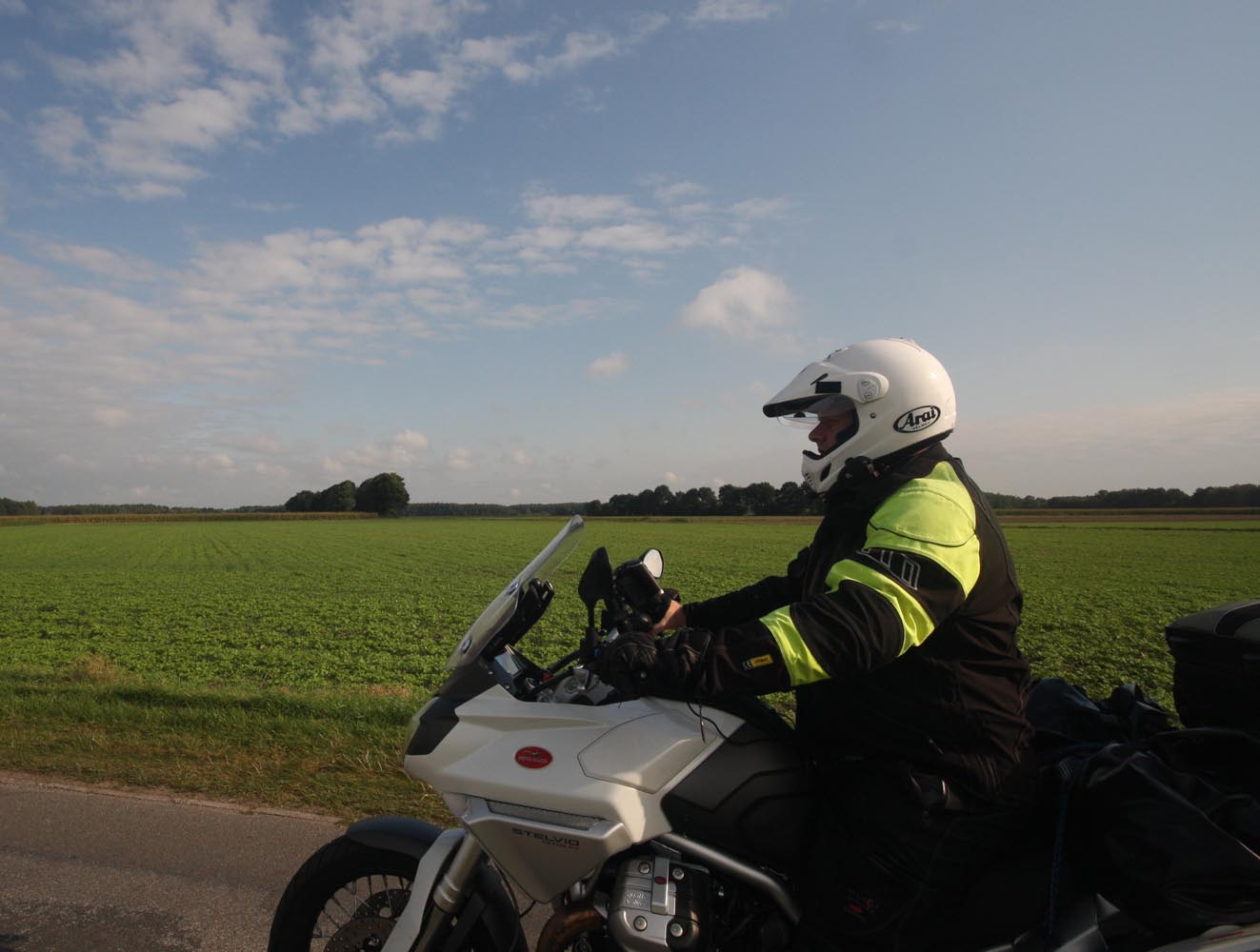 De Triumph vreet een helling, maakt scherp een bocht rechtsom naar beneden, duikt even in de vering, sprint een stukkie rechtuit en klimt meteen weer in een lange linkerbocht over een bult die ik in m’n buik voel. Mooie bochten en asfalt met goed grip, de wegen lijken aangelegd, louter en alleen om ervan te genieten: motorrijden in Engeland doe je met een grote smile. Weer of geen weer, het overtreft de beste kermisattractie. En zie je op de kaart een verboden-voor-caravans-symbool, dan is dat de weg die je moet hebben! Ik slinger mee met de Breamish rivier het Northumbria National Park in, totdat na een twintigtal geweldige kilometers de weg in de heuvels stopt. Niet erg, rij ik dat mooie stuk nog een keer! Er zijn weinig wegen die de Cheviot Hills kruisen, dus trek ik langs de voet van de heuvels zuidwaarts via de B6341 en de B6320, die helemaal tot het schilderachtige marktstadje Hexham loopt. Ik stop alleen om af en toe een hek open en dicht te doen en geniet van het landschap waarin uitgestrekte heidevelden, groene dalen, rivieren en bossen elkaar afwisselen. Voor Hexham buig ik af om nog een stukje B6318 te rijden, de weg die Hadrian’s Wall volgt: de met steenblokken gestapelde barrière, in 122 AD door de Romeinen gebouwd als buitengrens van het rijk om die lastige barbaarse Schotten buiten houden. De 117 kilometer lange muur loopt van de Ierse Zee tot de Noordzeekust door een glooiend coulisselandschap, dat in 2000 jaar maar weinig veranderde. Een rommelende maag stuurt me op een rondje zuidwaarts. In The Lord Crewe Arms (Blanchland) schuif ik achter een pot ‘afternoon tea’ en een ‘ploughman’s sandwich’. Het eeuwenoude uit natuursteen opgetrokken plaatsje is één van de meest authentieke dorpjes van Engeland. Hier heeft de tijd echt stilgestaan. Sommige oudere bewoners zijn nog altijd huiverig om het pleintje over te steken na zonsondergang: het schijnt er te spoken. Helaas, ik kan het niet checken, de zondagmiddag loopt op z’n eind. Binnendoor rij ik tot vlakbij Newcastle, laveer rond tientallen rotondes naar de haven waar de veerboot ligt te wachten, om me door de nacht terug naar IJmuiden te varen.