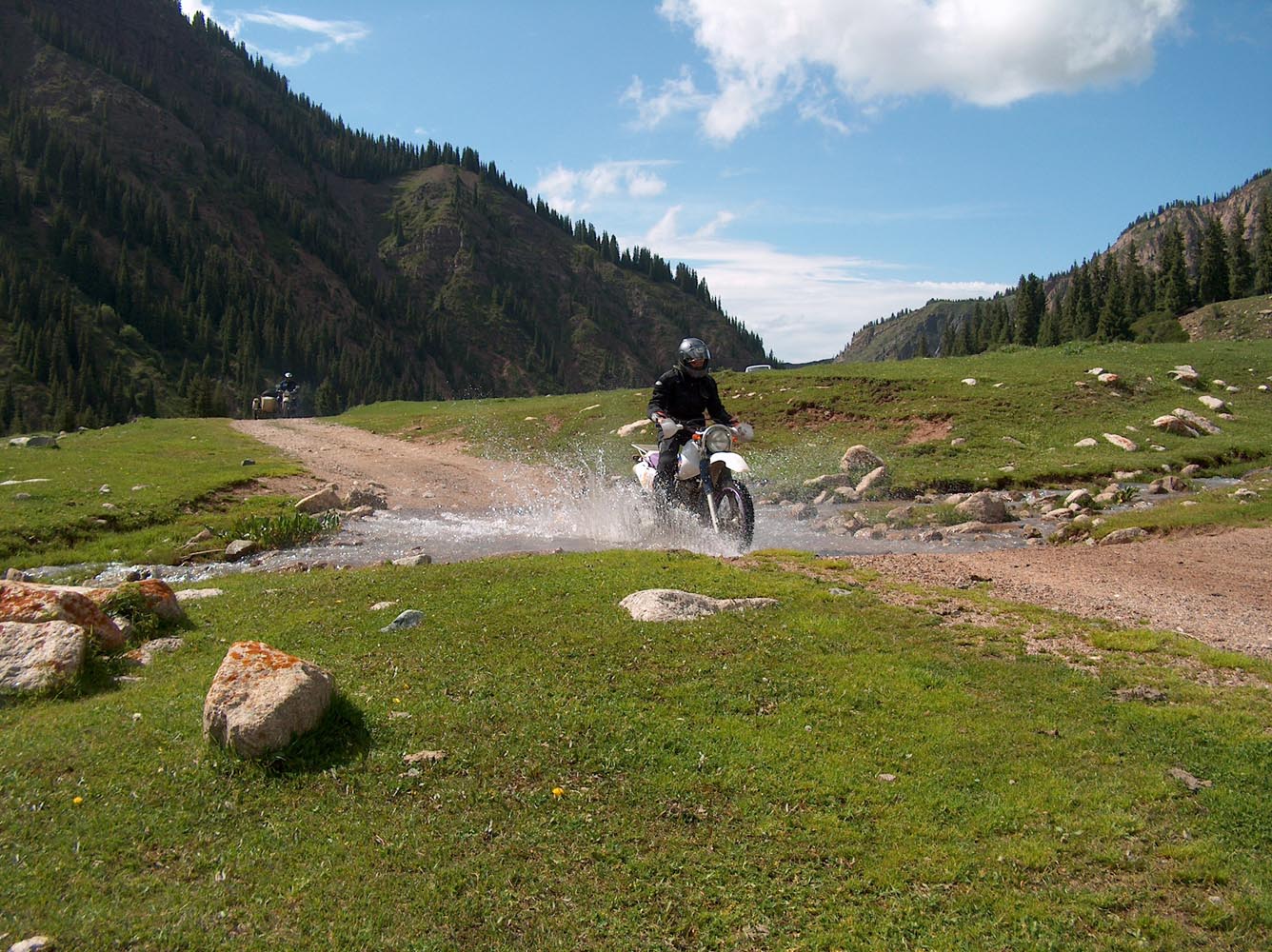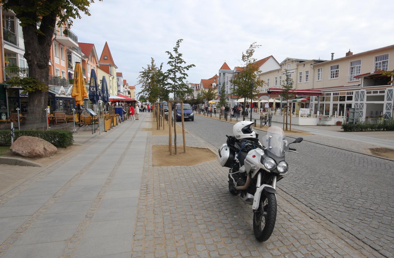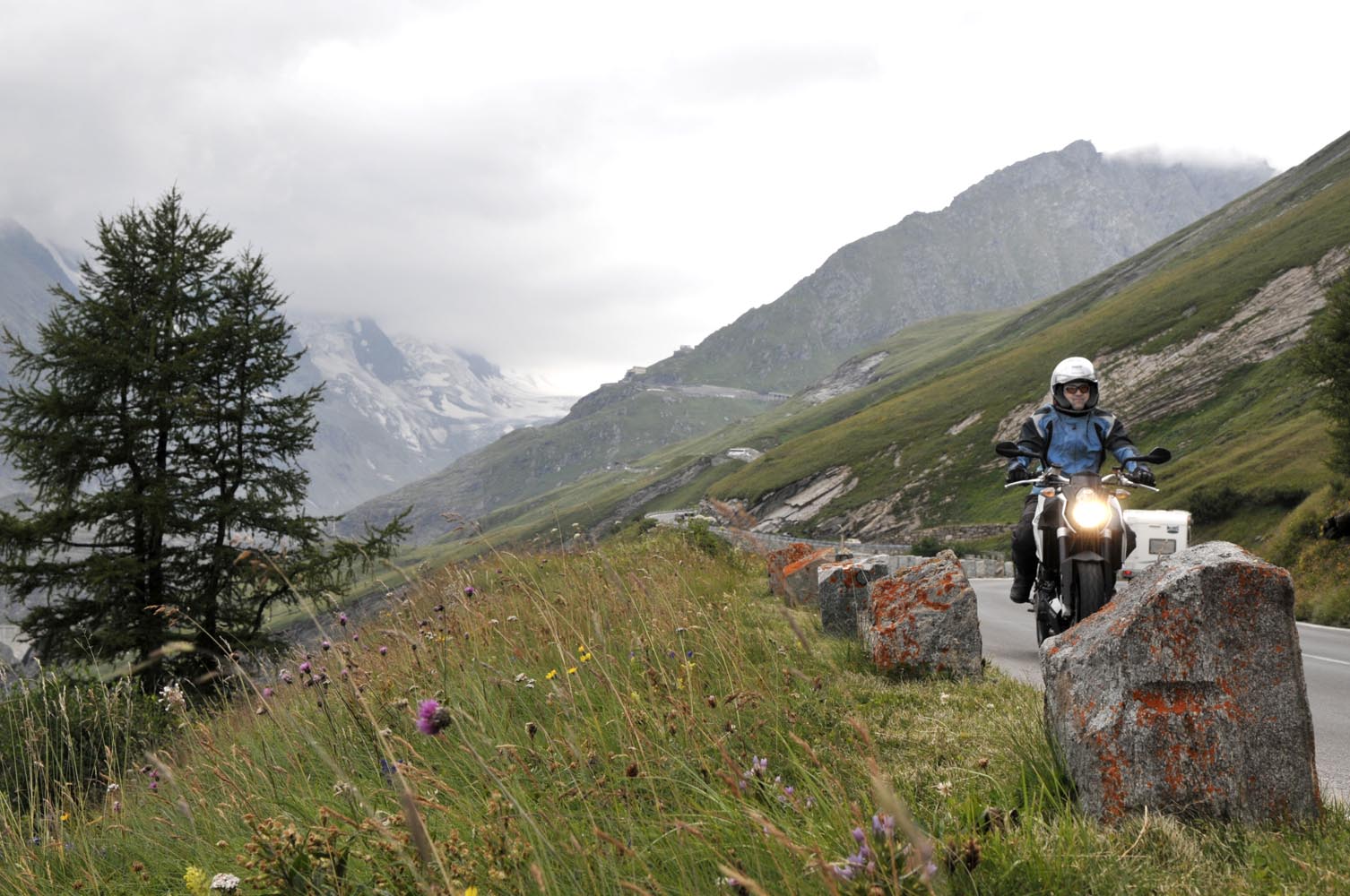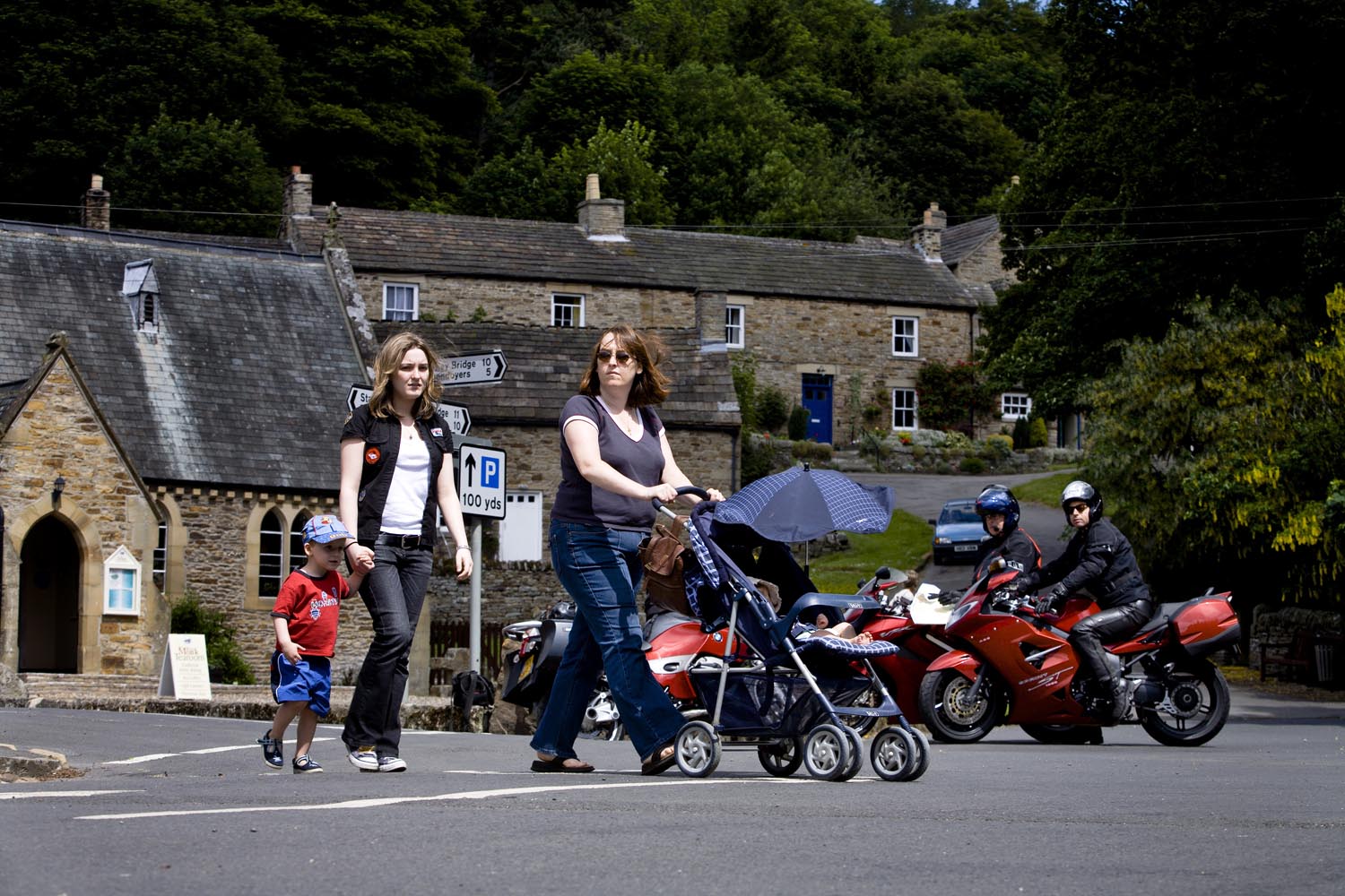 De Triumph vreet een helling, maakt scherp een bocht rechtsom naar beneden, duikt even in de vering, sprint een stukkie rechtuit en klimt meteen weer in een lange linkerbocht over een bult die ik in m’n buik voel. Mooie bochten en asfalt met goed grip, de wegen lijken aangelegd, louter en alleen om ervan te genieten: motorrijden in Engeland doe je met een grote smile. Weer of geen weer, het overtreft de beste kermisattractie. En zie je op de kaart een verboden-voor-caravans-symbool, dan is dat de weg die je moet hebben! Ik slinger mee met de Breamish rivier het Northumbria National Park in, totdat na een twintigtal geweldige kilometers de weg in de heuvels stopt. Niet erg, rij ik dat mooie stuk nog een keer! Er zijn weinig wegen die de Cheviot Hills kruisen, dus trek ik langs de voet van de heuvels zuidwaarts via de B6341 en de B6320, die helemaal tot het schilderachtige marktstadje Hexham loopt. Ik stop alleen om af en toe een hek open en dicht te doen en geniet van het landschap waarin uitgestrekte heidevelden, groene dalen, rivieren en bossen elkaar afwisselen. Voor Hexham buig ik af om nog een stukje B6318 te rijden, de weg die Hadrian’s Wall volgt: de met steenblokken gestapelde barrière, in 122 AD door de Romeinen gebouwd als buitengrens van het rijk om die lastige barbaarse Schotten buiten houden. De 117 kilometer lange muur loopt van de Ierse Zee tot de Noordzeekust door een glooiend coulisselandschap, dat in 2000 jaar maar weinig veranderde. Een rommelende maag stuurt me op een rondje zuidwaarts. In The Lord Crewe Arms (Blanchland) schuif ik achter een pot ‘afternoon tea’ en een ‘ploughman’s sandwich’. Het eeuwenoude uit natuursteen opgetrokken plaatsje is één van de meest authentieke dorpjes van Engeland. Hier heeft de tijd echt stilgestaan. Sommige oudere bewoners zijn nog altijd huiverig om het pleintje over te steken na zonsondergang: het schijnt er te spoken. Helaas, ik kan het niet checken, de zondagmiddag loopt op z’n eind. Binnendoor rij ik tot vlakbij Newcastle, laveer rond tientallen rotondes naar de haven waar de veerboot ligt te wachten, om me door de nacht terug naar IJmuiden te varen.