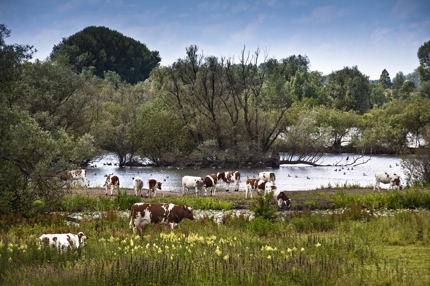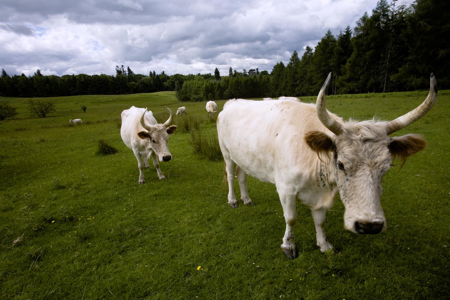 In het ochtendlicht stuur ik m’n Triumph Sprint ST naar het zuidwesten. We rijden landinwaarts via Breamish Valley naar het Northumbria National Park. In de berm van weg B6348 nabij Chatton trekt een simpel bordje de aandacht: ‘Wild Cattle’. Huh, wild vee? Na een fikse wandeling door wat een oerbos lijkt en het passeren van een aantal hekken ontmoet ik uiteindelijk de beheerder van een kudde unieke runderen. Hun geschiedenis gaat terug tot halverwege de 13de eeuw, toen op het ommuurde 134 hectare grote landgoed van Chillingham Castle vee werd uitgezet voor de jacht en voedselvoorziening. Sinds die tijd leeft de kudde geïsoleerd, in zijn oorspronkelijke biotoop, en is 700 jaar vrij gebleven van directe menselijke inmenging en fokprogramma’s. De witte dieren met hun roodharige oren staan genetisch dichter bij hun prehistorische voorouders dan welk ander rund ter wereld. Ondanks onvermijdelijke incest is de kudde sterk, gezond en zuiver. Wonderlijk is dat de dieren genetisch identiek en dus natuurlijke klonen zijn. Desondanks zien er geen twee er hetzelfde uit en dat lijkt in tegenstelling met de genetische wetenschap. Charles Darwin himself begon in 1862 een studie naar de Chillingham Wild White Cattle, een onderzoek dat tot op heden wordt voortgezet door de universiteit van Edinburgh. De diversiteit wordt deels verklaard door de ontwikkeling in de baarmoeder van een dier, dat leeft in een natuurlijke omgeving. Het bekijken van de kudde is alleen gedoseerd en vanuit de Landrover van de parkwachter mogelijk. Niet alleen om de dieren te beschermen, ook voor de veiligheid van de bezoekers, want het zijn wilde dieren, vooral als ze kalveren hebben. Het geïsoleerde park heeft een positieve invloed op de wildstand van het natuurgebied: onder gigantische uit de Middeleeuwen stammende elzebomen leven damherten, zwijnen en roofvogels. De wilde kudde vormt een indrukwekkend levend monument, waarvan het bestaansrecht is vastgelegd: de komende 999 jaar mogen zij in het park blijven grazen.
