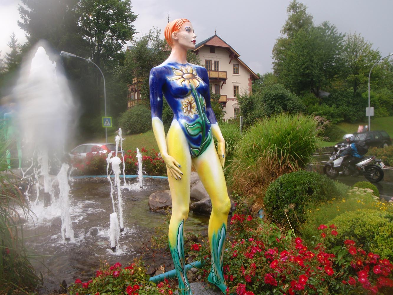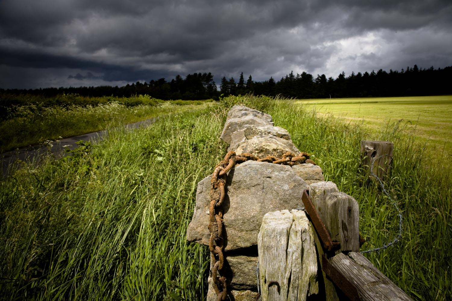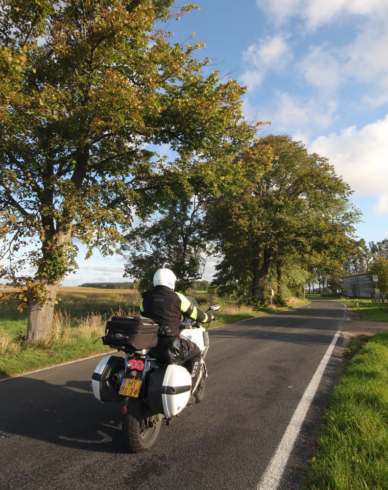 Maar voordat ik landinwaarts verder trek, boek ik vast een hotelletje. Westelijk van de A1 naar Edinburgh, ligt een mooi glooiend land met veel kleine weggetjes door een agrarisch gebied met kleine dorpen. De rhododendrons kleuren uitbundig. Bossen en open land wisselen af, doorsneden door beekjes en kleine rivieren. Een land waar de wegen lijken te zijn aangelegd door en voor motorrijders.