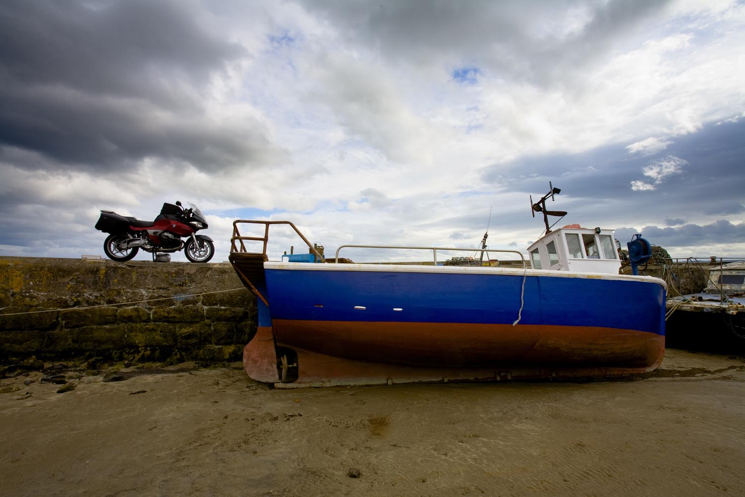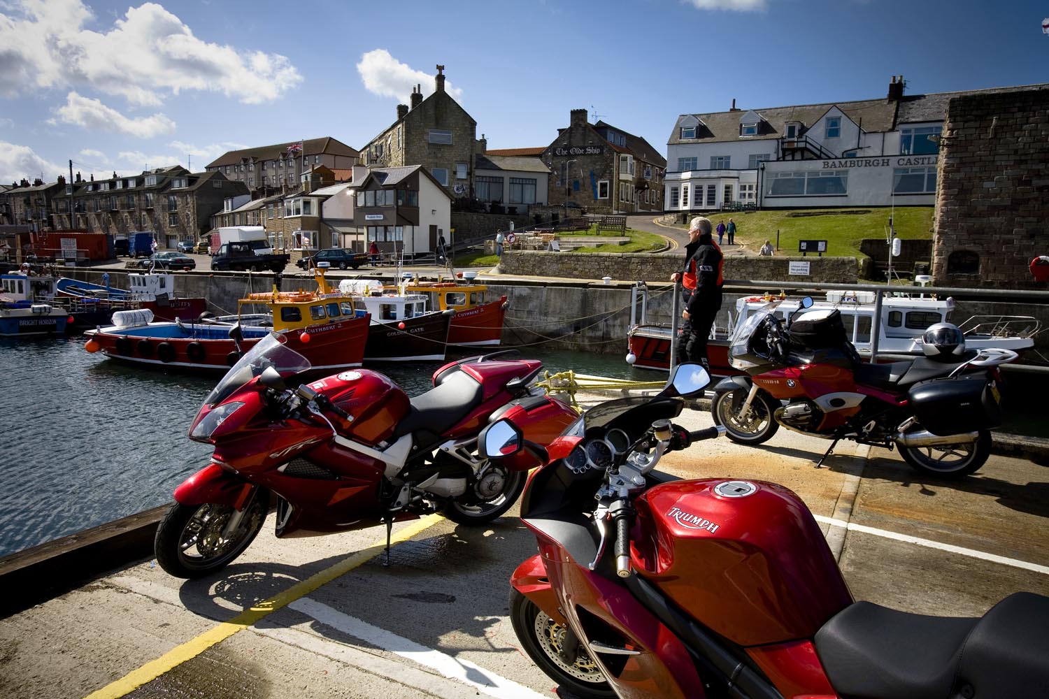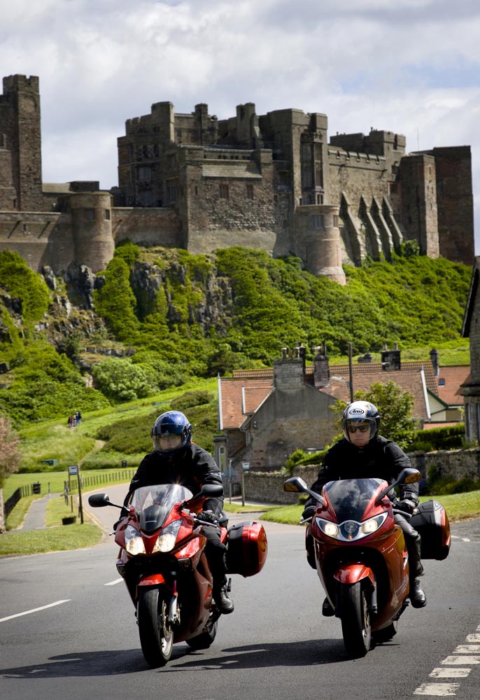Een straffe aflandige wind beteugelt de branding die gestuwd door het opkomend tij toch steeds weer een streepje verder landwaarts rolt. Aan de einder, op golven met schuimende stormkoppen zijn vaag de silhouetten van enkele boten te zien. ‘Zwaar zeetje, lastig om te landen’, denk ik onwillekeurig en fantaseer over al die schepen die gedurende vele eeuwen op deze kust aangekoerst hebben. En nee, ook al doet het landschap er sterk aan denken, ik bevind me niet op één van onze waddeneilanden. Als ik me omdraai sta ik oog in oog met het enorme Lindisfarne Castle, dat bijna op een natuurlijke manier de top vormt van een eenzame rots op een stukje land in zee dat soms wel, en soms geen eiland is. Het decor heet Northumbria, en ik rij hier een weekend rond op de motor.