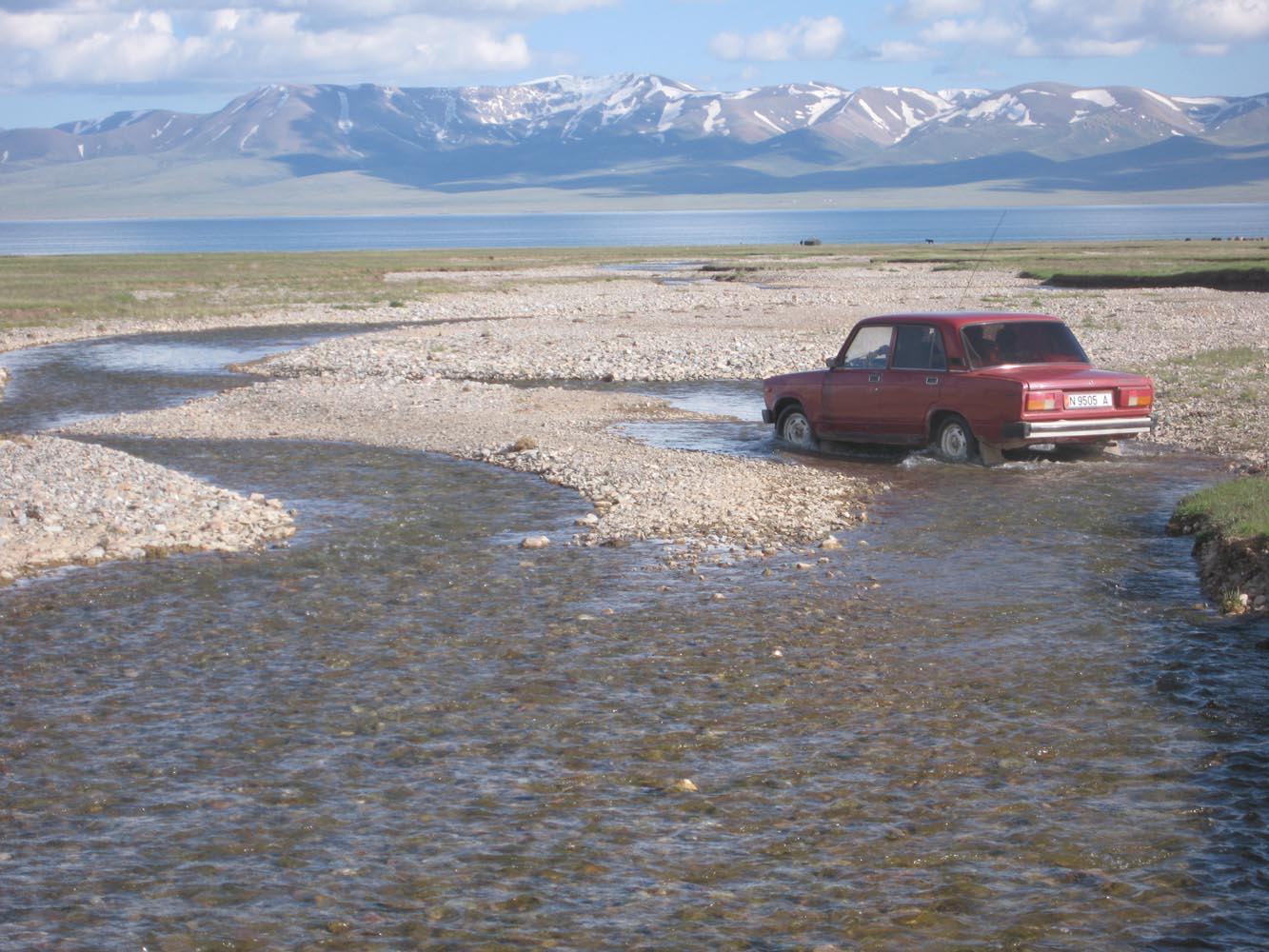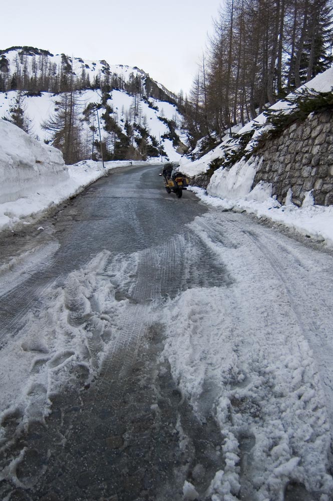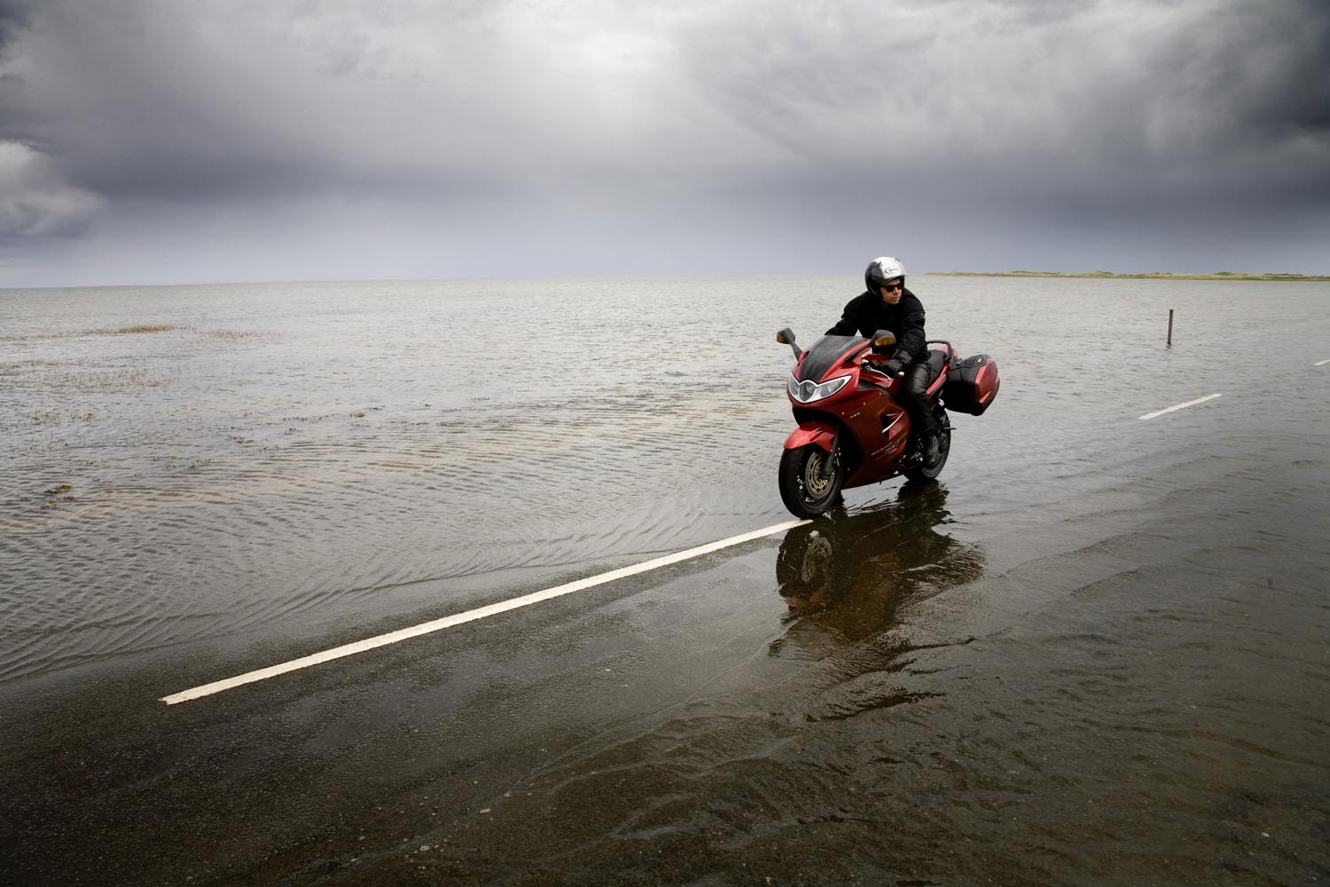 Tijdens een rondje om het kasteel heb ik de tijd goed in de gaten gehouden: mis je het juiste moment, dan zit je zeker zes uur vast op het kasteeleiland. Maar ik ben te vroeg. Voor me gaat de weg nog schuil onder een kabbelende golfslag. Kilometers water scheiden me van de kust. Het is fascinerend om te zien hoe de zee zich terugtrekt en hoe over de zanderige zeebodem een gave asfaltloper wordt uitgerold. Al gauw rij ik langs borden die waarschuwen voor het wassende water. Wie die raad in de wind slaat, zal in een noodgeval het vege lijf moeten redden in één van de schuilhutjes op palen. Tsja, en dan maar wachten, boven de klotsende golven, onder het hoongelach van door de lucht schietende kokmeeuwen.