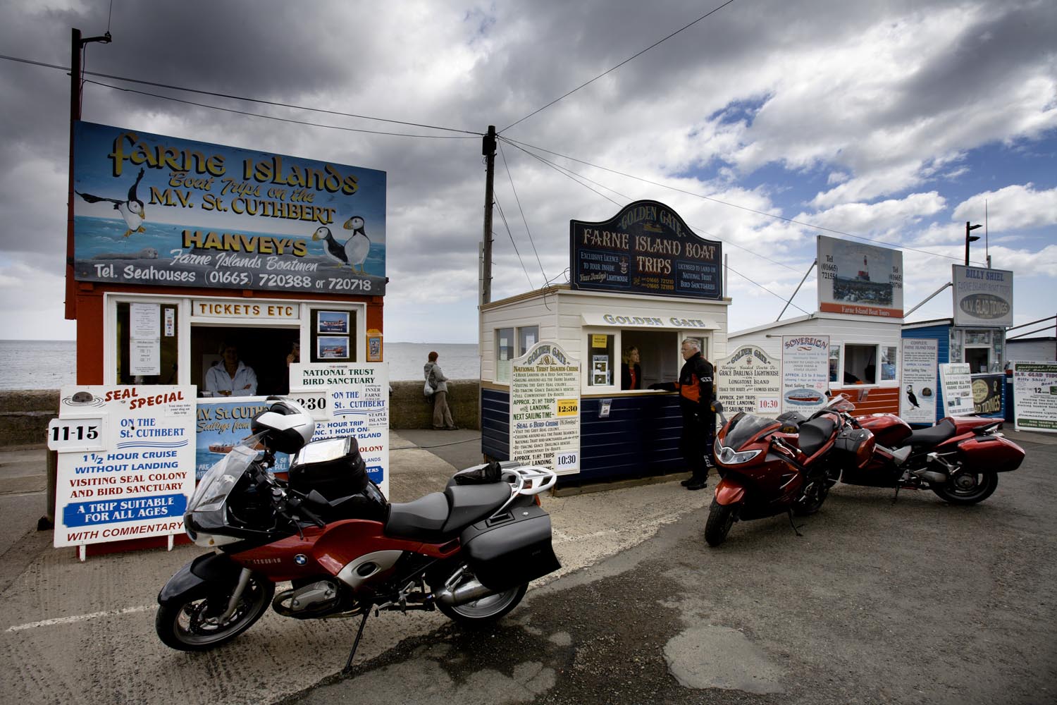 Ook al liggen ze slechts een paar kilometer oostelijk van de A1, die Newcastle met Edinburgh verbindt, de dorpjes aan de kust hebben de authentieke sfeer goed geconserveerd. Seahouses beschikt over een sfeervol haventje, waarvan het historische deel nog ommuurd is. Ooit bedoeld om bescherming te bieden tegen indringers vanuit zee, werd het in vredestijd een ‘veilige haven’ voor het smokkelverkeer met Schotland. Vissersboten dobberen op de deining, terwijl de visserlui netten boeten en dekken schrobben. Op de kades liggen kreeftenfuiken, bundels veelkleurig touw en kratjes van de visafslag. In het noorden staat het silhouet van Bamburgh Castle op de duinen, terwijl je in het zuiden nog net de ruines van Dunstanburgh Castle kunt zien. Voor de kust liggen de Farne eilanden met de door Henry VIII gebouwde Longstone vuurtoren. Hoewel zo’n beetje overbodig geworden door satellietnavigatie, brandt die toch nog iedere nacht: het voortbestaan is gegarandeerd door de beschermvrouwe van het lichtbaken, de Queen zelf. Kan het Britser! Vanuit de haven vetrekken bootexcursies naar de eilandjes, naar de zeehondenkolonies en de broedplaatsen van de grappige papegaaiduikers, de puffins. Het Engelse dametje in de kaartjeskiosk probeert me ‘oh yes dear, it’s lovely!’over te halen, maar ik pas als ik zie hoe een schoolklasje stil en met witweggetrokken koppen aan wal klimt, na twee uur speelbal te zijn geweest van de golven. Ik zwier liever zelf! En bij voorkeur door mooie bochten, en die zijn er gelukkig volop.