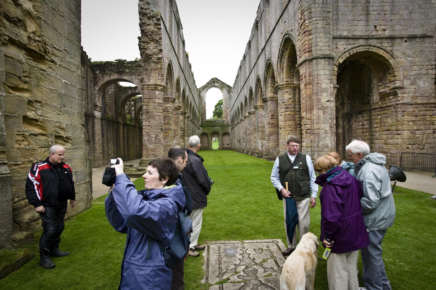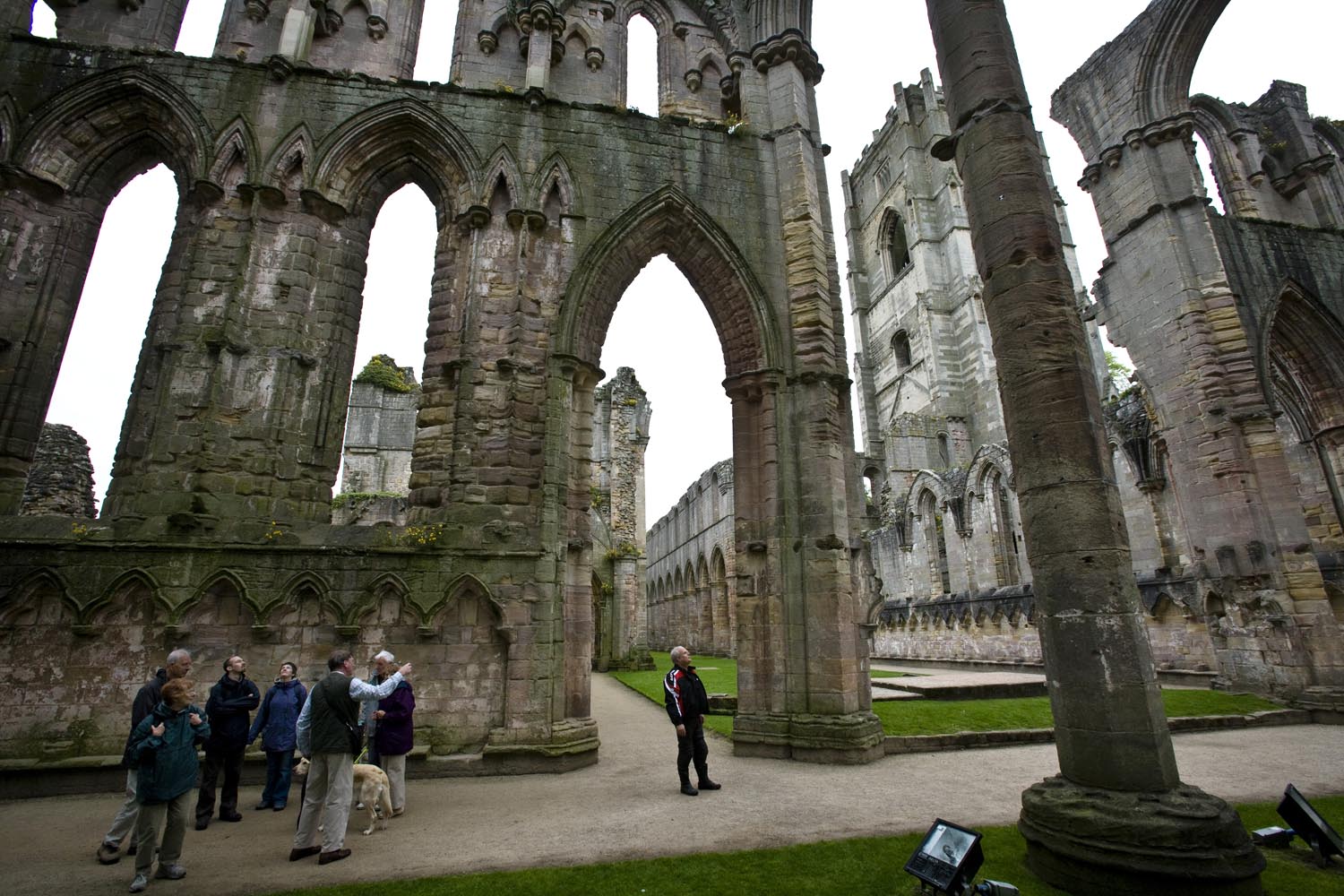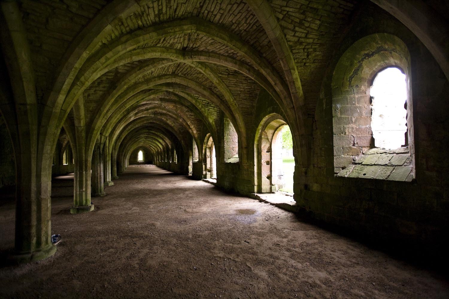 We besluiten door te gaan, naar de Fountains Abbey, buiten Ripon. Dit werelderfgoed blijkt een prachtige vervallen abdij met een grote kerk te zijn, tussen de gladgeschoren gazons. Er ligt één fish-and-chips bakje met resten mayo op het gras. Ik raap het op, dat kan toch niet. Een vriendelijke priester vertelt me dat het policy is om geen vuilnisbakken op het terrein te plaatsen, zodat er ook geen troep zou ontstaan. De oorsprong van de abdij ligt bij de Cisterciënzer orde, en die wilde altijd ver weg van het wereldse vermaak. Nou, wereldvreemd zijn ze daar nog steeds een beetje… Het geheel doet me denken aan het boek Pillars of the Earth, van Ken Follet. Gaat over het soort mensen dat deze gebouwen heeft neergezet. En die waren echt niet wereldvreemd. Follet laat zijn bouwmeester steeds sterke vaults –gewelven – bouwen. In Fountains Abbey zie je die nog overal, het geraamte van het gebouw is nog steeds behoorlijk intact.