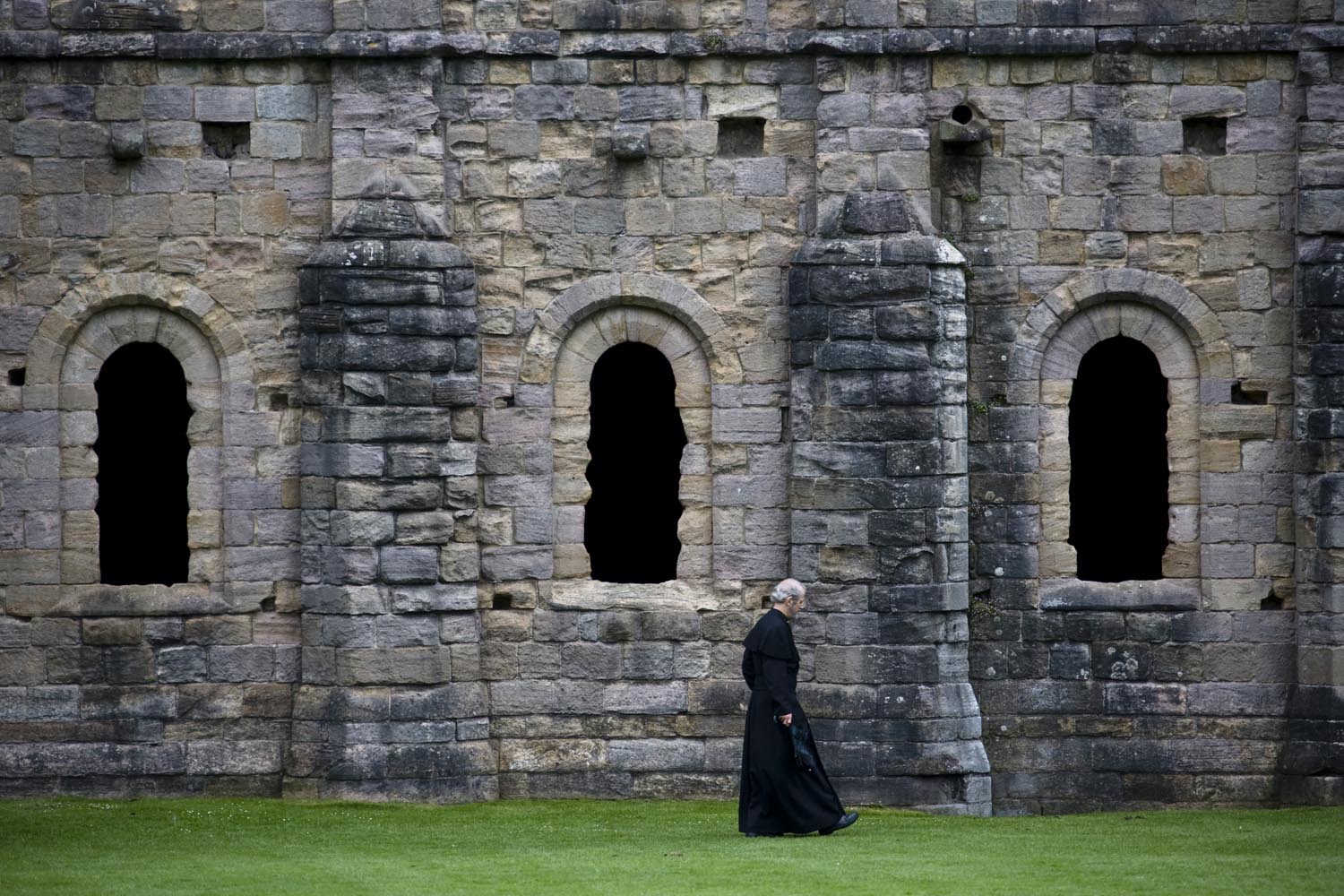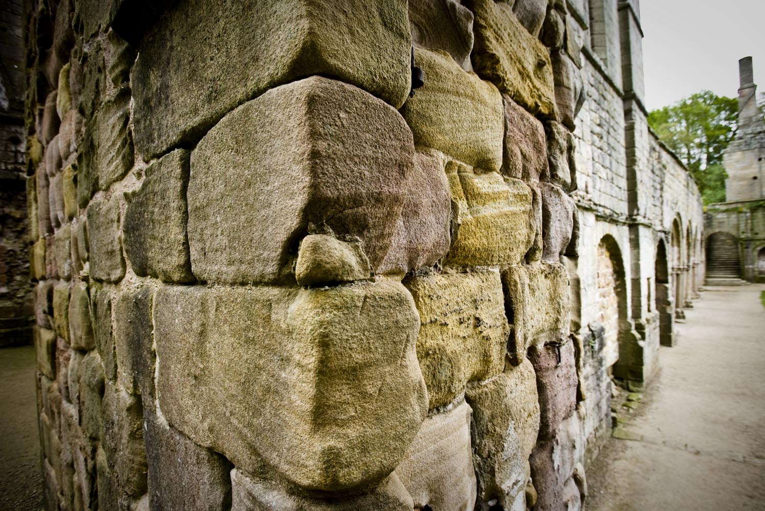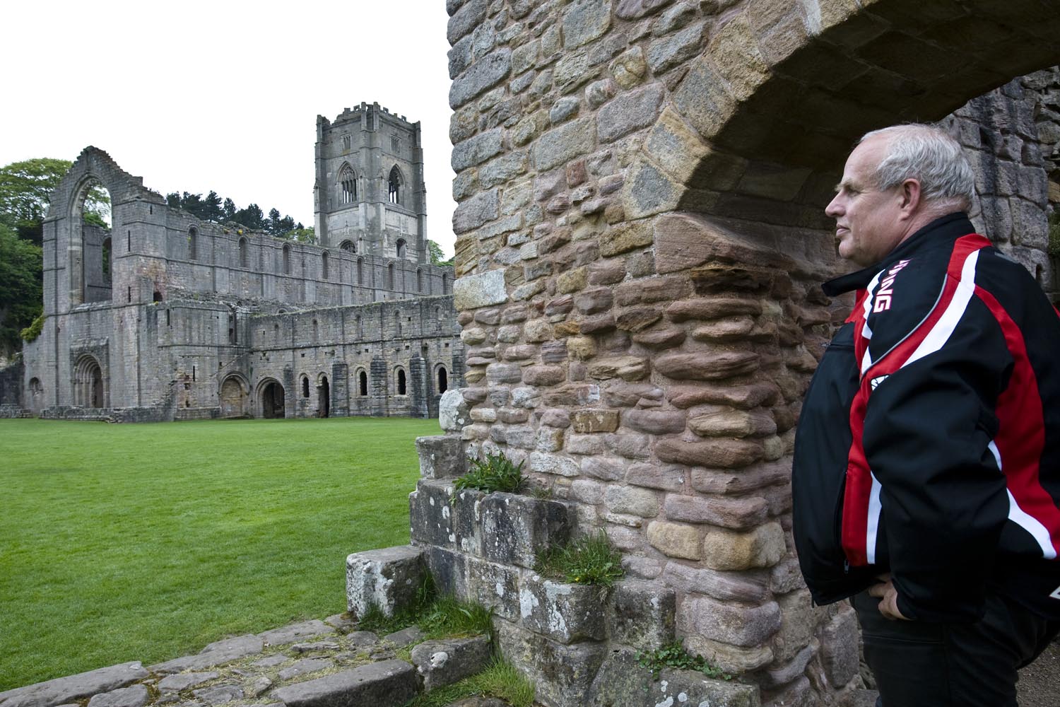 We besluiten door te gaan, naar de Fountains Abbey, buiten Ripon. Dit werelderfgoed blijkt een prachtige vervallen abdij met een grote kerk te zijn, tussen de gladgeschoren gazons. Er ligt één fish-and-chips bakje met resten mayo op het gras. Ik raap het op, dat kan toch niet. Een vriendelijke priester vertelt me dat het policy is om geen vuilnisbakken op het terrein te plaatsen, zodat er ook geen troep zou ontstaan. De oorsprong van de abdij ligt bij de Cisterciënzer orde, en die wilde altijd ver weg van het wereldse vermaak. Nou, wereldvreemd zijn ze daar nog steeds een beetje… Het geheel doet me denken aan het boek Pillars of the Earth, van Ken Follet. Gaat over het soort mensen dat deze gebouwen heeft neergezet. En die waren echt niet wereldvreemd. Follet laat zijn bouwmeester steeds sterke vaults –gewelven – bouwen. In Fountains Abbey zie je die nog overal, het geraamte van het gebouw is nog steeds behoorlijk intact.