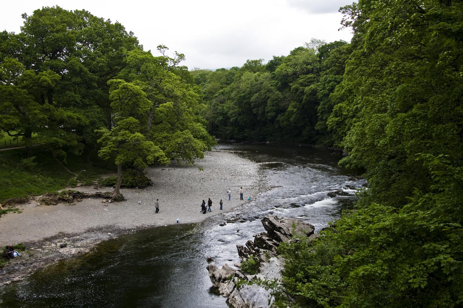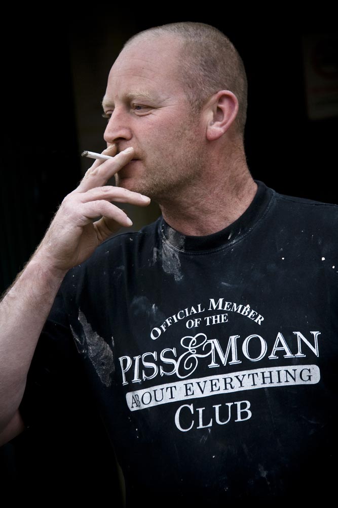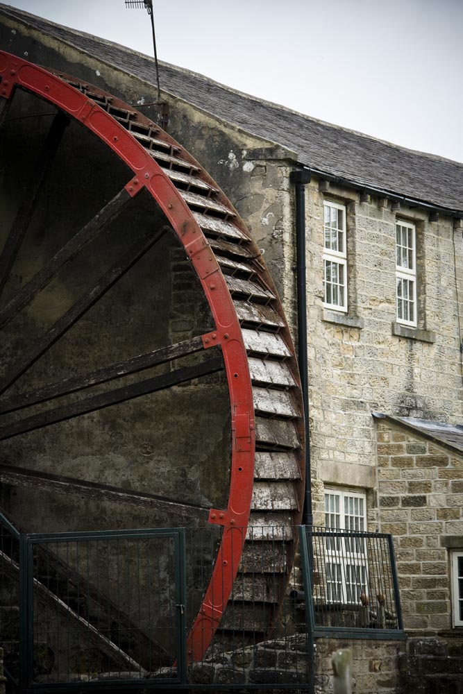 Ons doel is Pateley Bridge, in het Nidderdale. Een lief plaatsje met een steil aflopende hoofdstraat. De rustieke huisjes leunen tegen elkaar, en ze herbergen allemaal een winkeltje voor de beter bedeelde toerist. Dit moet de natte droom zijn van elke ontwikkelaar die een ‘authentieke’ shopping mall wil inrichten voor toeristen, maar deze echtheid groeit alleen in eeuwen. Gelukkig hebben ze dat vast kunnen houden. Wij besluiten toch om het Nidderdale nog wat dieper te gaan verkennen, richting Lofthouse (het noorden). Dan komen we bij nog een brug, geflankeerd door de Bridge Inn. En die wordt weer geflankeerd door een prachtig gebouw waar een waterwiel van zo’n elf meter aan hangt. Voorheen de Watermill Inn, en daar voorheen een molen waar vlas werd gebraakt, gezwingeld en gehekeld, nadat het goed was gerepeld en geroot natuurlijk. Echt waar. Die ambachtelijke sfeer hangt nu alleen nog rond het schoepenrad. In het historische gebouw wonen mensen. Maar in de kroeg hangt een foto van een vrouw die werkte in de vlasmolen, en die vrouw leeft nog, vertelde een bierdrinkende Yorkshire man me. Later raken we op het terras verder aan de praat. Hij heet Tony, en is volgens zijn t-shirt ‘Official member of the Piss and Moan about everything Club’, een exclusief gezelschap met één lid… Het gesprek neemt een andere wending. Hij wijst ons op de schoonheid van de omringende natuur en de bezienswaardige grotten en gorges in de omgeving. Die inderdaad prachtig zijn.