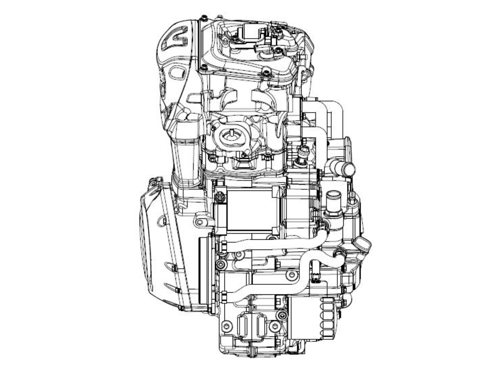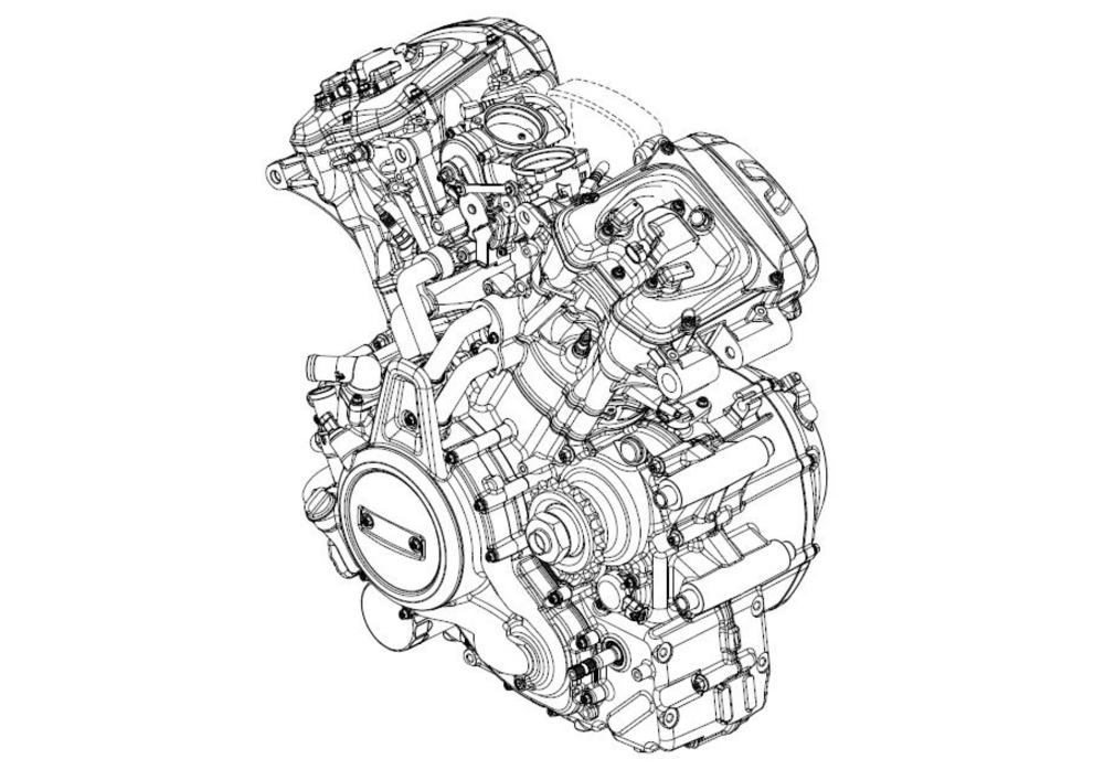 De tekeningen, ingediend bij een EU-bureau dat gaat over intellectueel eigendom, bieden verdere aanwijzingen over de kenmerken van het tweecilinderblok. Dat zal vanaf volgend jaar een nieuwe modellenfamilie gaan aandrijven. Die moeten in 2020 op de markt komen als 2021 modellen. We denken te maken te hebben met vier vloeistofgekoelde versies van verschillende inhoud van ongeveer 500 tot 1250cc.