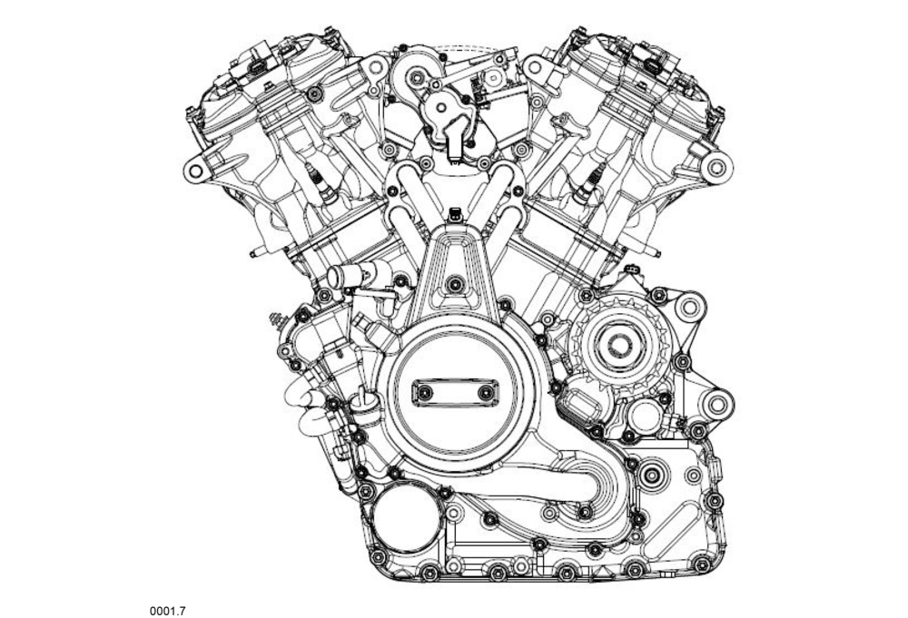 Tekeningen van de nieuwe V-twin, die vanaf 2020 de allroads Pan America en nieuwe middelzware Harley-Davidsons zal aandrijven, zijn ingediend.
