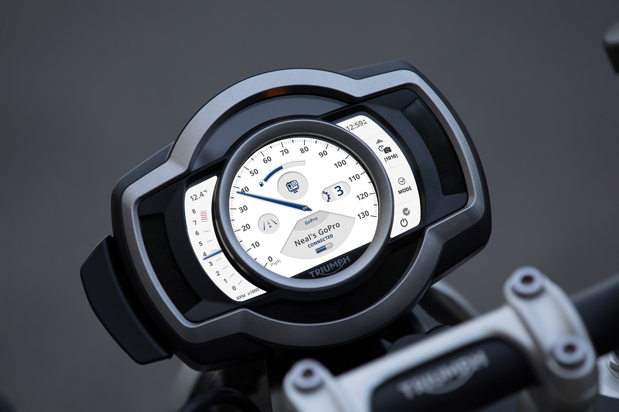 Triumph introduceert de eerste motorfiets waarop het bedieningssysteem van de GoPro is geïntegreerd, deze functionaliteit is alleen beschikbaar bij Triumph.