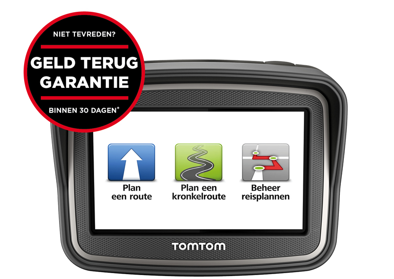 TomTom is zeker van z’n zaak. Zo zeker zelfs dat ze met een geld terug-garantie komen op de aankoop van de nieuwe TomTom RIDER. Mocht je binnen 30 dagen na aankoop niet tevreden zijn over de RIDER, dan geeft TomTom je geld terug. Deze actie geldt tot 30 juni 2013, exclusief bij de motorspeciaalzaak.
