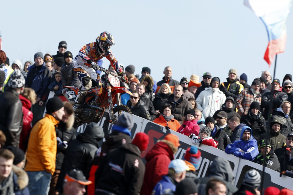 Voor het derde jaar op rij was Tony Cairoli de sterkste in de MX1. De zesvoudig wereldkampioen uit Italië won de eerste manche en werd achter zijn teamgenoot Ken de Dycker tweede in de tweede reeks. Cairoli: “Ik ben blij weer gewonnen te hebben. Ik heb er hard voor moeten rijden. In de tweede manche viel ik aanvankelijk een paar plaatsen terug, maar ik wist weer naar voren te komen. Winnen is goed voor het kampioenschap. En nu op naar de volgende GP, de Italiaanse.”