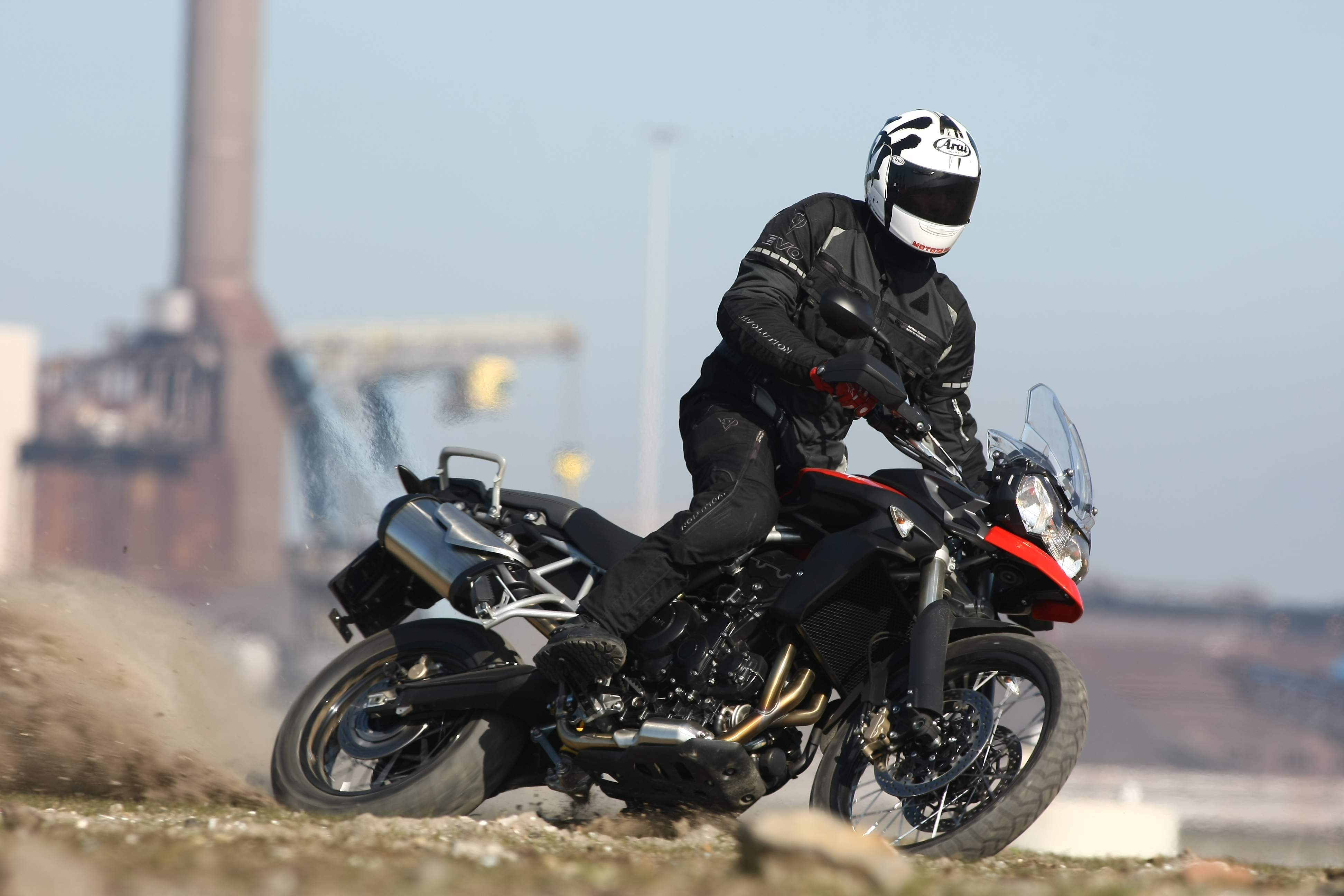 Triumph heeft zijn best gedaan om liefhebbers van allroads zoveel mogelijk van dienst te zijn. Realistisch als de Britten zijn, hebben zij naast een echte ‘Cross-Country’ ook een meer asfaltgerichte versie gemaakt. Veel mensen kopen zo’n motor namelijk alleen maar voor de stoere en robuuste uitstraling. En wat heb je aan boterzachte vering, als je toch alleen maar op verharde wegen rijdt? Voor auto’s geldt hetzelfde; hoeveel SUV’s zie je nu helemaal in het terrein? Voor puristen is het waarschijnlijk een doodzonde, maar ook wij zien zo’n stoere wegmotor wel zitten. Zeker als hij ook nog eens goed rijdt. De Triumph zit, om maar eens een klassieker van stal te halen, als een Honda. De zithouding klopt als een zwerende vinger. De verhouding tussen stuur, zadel en voetstepjes pakt prima uit. We reden de Tiger 800 met het zadel in de hoogste positie (830 mm), wat een riant comfortabele beenhoek oplevert. Kleinere motorrijders moeten bij het stoppen wel opletten waar ze hun benen neerzetten, om te voorkomen dat hun naar grip zoekende teentjes niet alleen lucht aantreffen. Of ze zetten het zadel heel eenvoudig in de laagste positie, wat 20 mm hoogte scheelt.