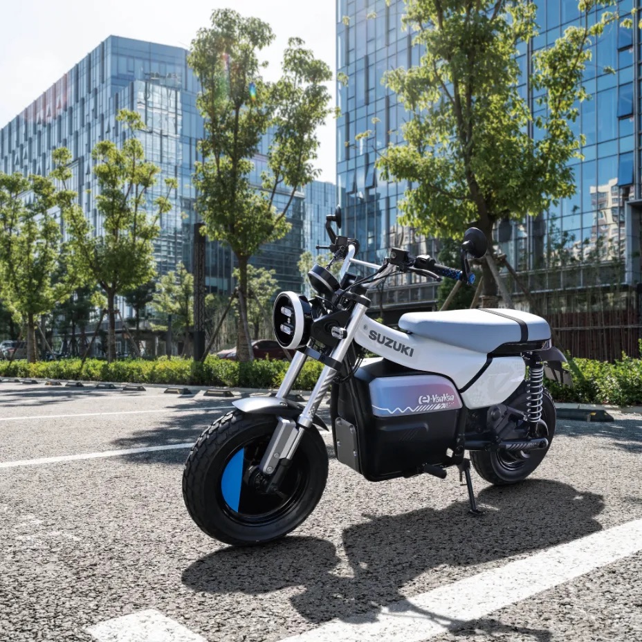 De e-VanVan houdt vast aan de typische VanVan-signatuur: een ronde koplamp, brede banden, een vlak zadel en een hoog, breed stuur. Onder de retrohuid schuilt echter een elektrische aandrijflijn. In het hart van de e-VanVan ligt de elektromotor uit Suzuki’s stads-scooter eAdress. Die levert een piekvermogen van 4,1 kW en 15 Nm koppel — waarden die duidelijk mikken op vlot en stil stadsverkeer. Suzuki deelt voorts amper technische info, maar bevestigt alvast de afmetingen: 1.810 mm lang, 1.050 mm hoog en 825 mm breed. Voorts spotten we stereovering achteraan, een kleine UPSD-vork vooraan en schijfremmen aan beide uiteindes. Specificaties zoals batterijcapaciteit, laadtijden en rijbereik worden later verwacht.
