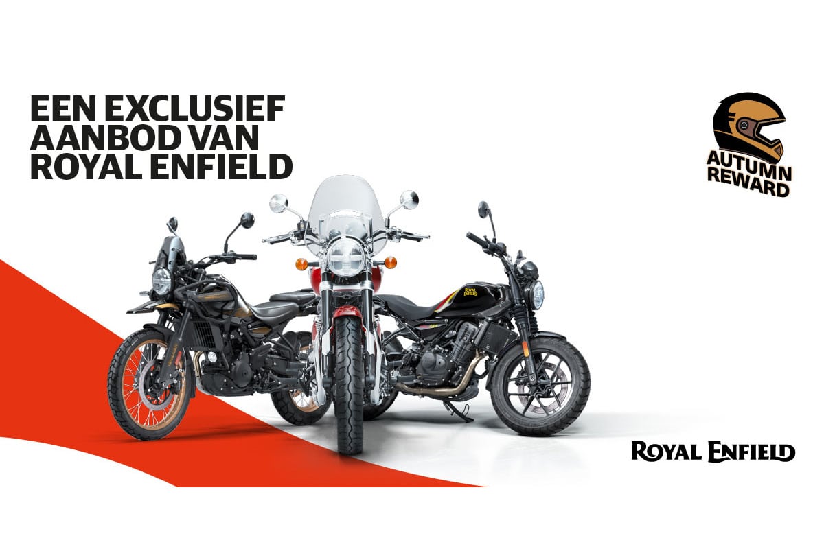 Profiteer tot en met 31 oktober 2025 van een uitzonderlijk aanbod op een selectie van onze Royal Enfield-modellen. Tot wel €600* voordeel op je motorfietsaankoop of in vouchers te besteden aan Royal Enfield-kleding en -accessoires! Mis deze unieke kans niet om op een Royal Enfield te rijden.