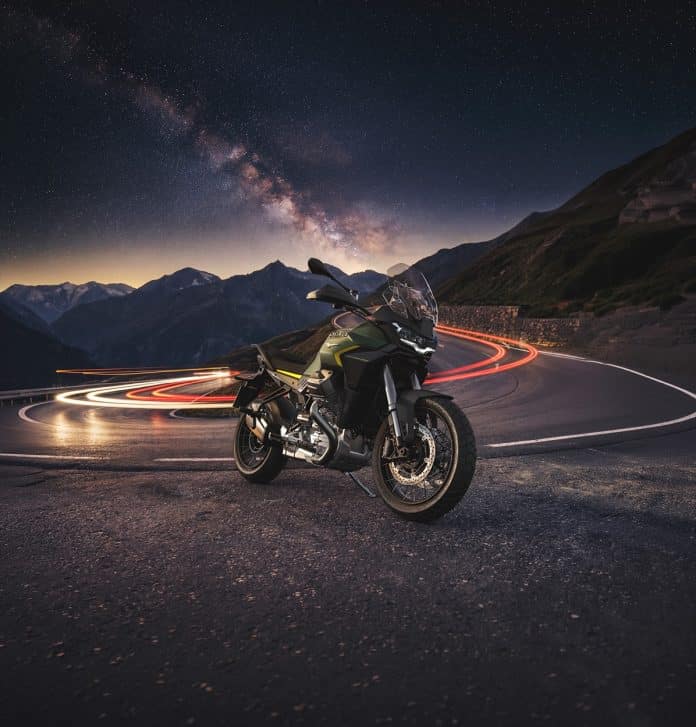 Dat kan wel. Het nieuwe, intussen wel bekende 890 V2-blok is goed voor 120 bij 10.750 toeren. Het frame is een monocoque exemplaar dat samen met de lichtere dubbele swingarm, gesmede wielen en wat carbon maakt dat de SP 14 kilogram lichter is dan voorheen. Verder heb je Öhlins voor en achter, Brembo’s vooraan en meer elektronica dan ik hier kan opnoemen.
