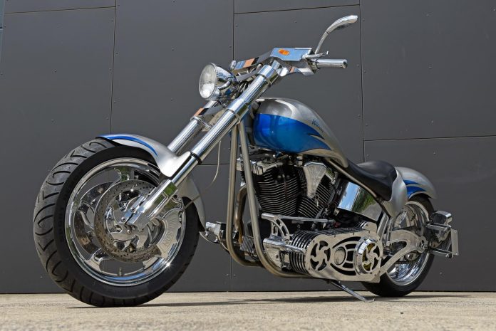 Kris vervolgt:“Ik had al veel gezien, maar uiteindelijk was ik een leek in de Harley wereld. In de loop van 1995 heb ik de eerste remschijven en bijhorende klauwen gefabriceerd. Nadat ze op de draaibank grondig uitgetest waren, kreeg ik het vertrouwen van de aspirant kopers. Wie een rempomp kan maken, moest de rest wellicht ook wel aankunnen. De Softail frames zijn afkomstig van Zodiac, evenals de Harley 1340 Evo motorblokken met versnellingsbak, die destijds nog apart aangekocht konden worden. Het K&N luchtfilter draagt de inscriptie ‘Big Boy’, want het beest moest uiteindelijk een modelnaam hebben. Het gebruikte 70/75 vliegtuig aluminium is niet goedkoop, maar wel bijzonder sterk en niet te plooien. Het kan ook probleemloos verchroomd of geanodiseerd worden. Vijf jaar lang heb ik dagdagelijks na de gangbare werkuren aan de motoren gewerkt, inclusief weekends en feestdagen. Constant stukken uittekenen, frezen en minutieus bijwerken. Terwijl ik instond voor het mechanische, was mijn broer Gerry belast met het elektrische gedeelte, hulp aan het carrosseriewerk en het vervaardigen van polyester mallen. Bij de aflevering werd een stage 2-kit los in de doos meegeleverd, zodat de vrienden van Retie zelf over de montage konden beslissen.” De Wilson motoren hebben 120 zelf vervaardigde onderdelen, aangevuld met slechts enkele aangekochte accessoires. Daartoe behoren de Supertrapp uitlaten, het Corbin zadel en de Akront velgen. Elke motor heeft zijn eigen kleurstelling. De ‘spaken’ hebben een uit massief aluminium uitgefreesde stervorm.