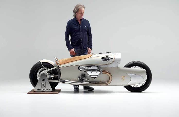 Ter gelegenheid van 100 jaar BMW Motorrad heeft hij nu de R 18 The Crown gemaakt, een grote boxermotor die alles in zich heeft. “Ik begon met een nieuwe BMW R18 die ik vervolgens helemaal gestript heb. Zoals altijd heb ik gewerkt met hard schuim en karton om de vorm, de lijnen en het ontwerp te creëren. Het doel was om het er krachtig, elegant en snel uit te laten zien, gecombineerd met een innovatieve uitstraling,” beschrijft Oehlerking zijn ontwerpbenadering.