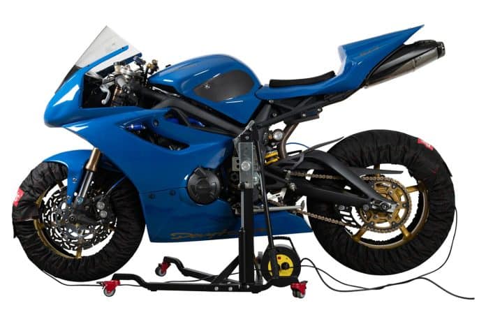 De grootste pluspunt is het geïntegreerde dempingssysteem, dat zorgt voor een soepele en gecontroleerde verlaging van de motor, zonder schokken. De soepel rollende dubbele wielen maken het eenvoudig om je motor op de juiste plek te zetten. Met de vergrendelbare remmen blijft hij stevig staan.