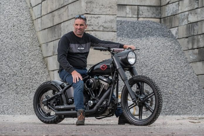Terwijl we aan een gehaktbal en cola zitten in een café in Enschede vertelt Egon: “Vroeger reed ik brommers en heb ik een tijdje gecrost. Rond 2015 begon het Harley-virus toe te slaan. Dat kwam door een zwager en een paar vrienden die samen reden als de H.O.H., ofwel de Harleys Oet Hoksebarge! Ik wilde ook zoiets en kocht een Shovel-bobber via Marktplaats.” De Harley-vonk sloeg snel over. Egon maakte een gestrand project af van iemand anders, waarna er een strak verbouwde Breakout volgde en een door Thunderbike gebouwde FXDR. “Echt een prachtige motor, al kon ik er door een hernia niet lang op rijden.” De Road Glide die daarna kwam, bleek qua rijcomfort een schot in de roos. “Die heb ik nog steeds. Een hele fijne motor voor lange ritten.”