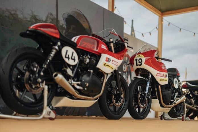 De GT-R 750 werd niet groots gelanceerd op EICMA, zoals de Bullet 650 en Himalayan 450, maar stond half verstopt in een open transportkist. In Goa konden bezoekers ‘m voor het eerst écht van dichtbij zien. Het gaat nog steeds om een concept, maar dan wel een die behoorlijk uitgewerkt oogt. De raceversie mist verlichting en richtingaanwijzers, maar toont wel een Showa-voorvork, dubbele achterschokdempers, lage clip-ons en een verkort subframe. Het uiterlijk doet denken aan de huidige GT-R 650 Cup-racers, maar dan gespierder. En dat klopt: onder de tank schuilt een nieuwe twin met een cilinderinhoud die groeit richting 750cc.