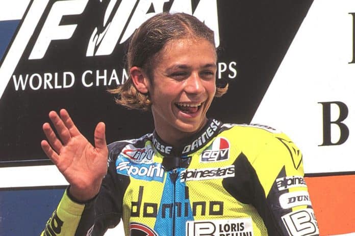 Op 18 augustus 1996 behaalde Valentino Rossi zijn eerste GP-zege. Hij deed dat op het circuit van Brno in Tsjechië.