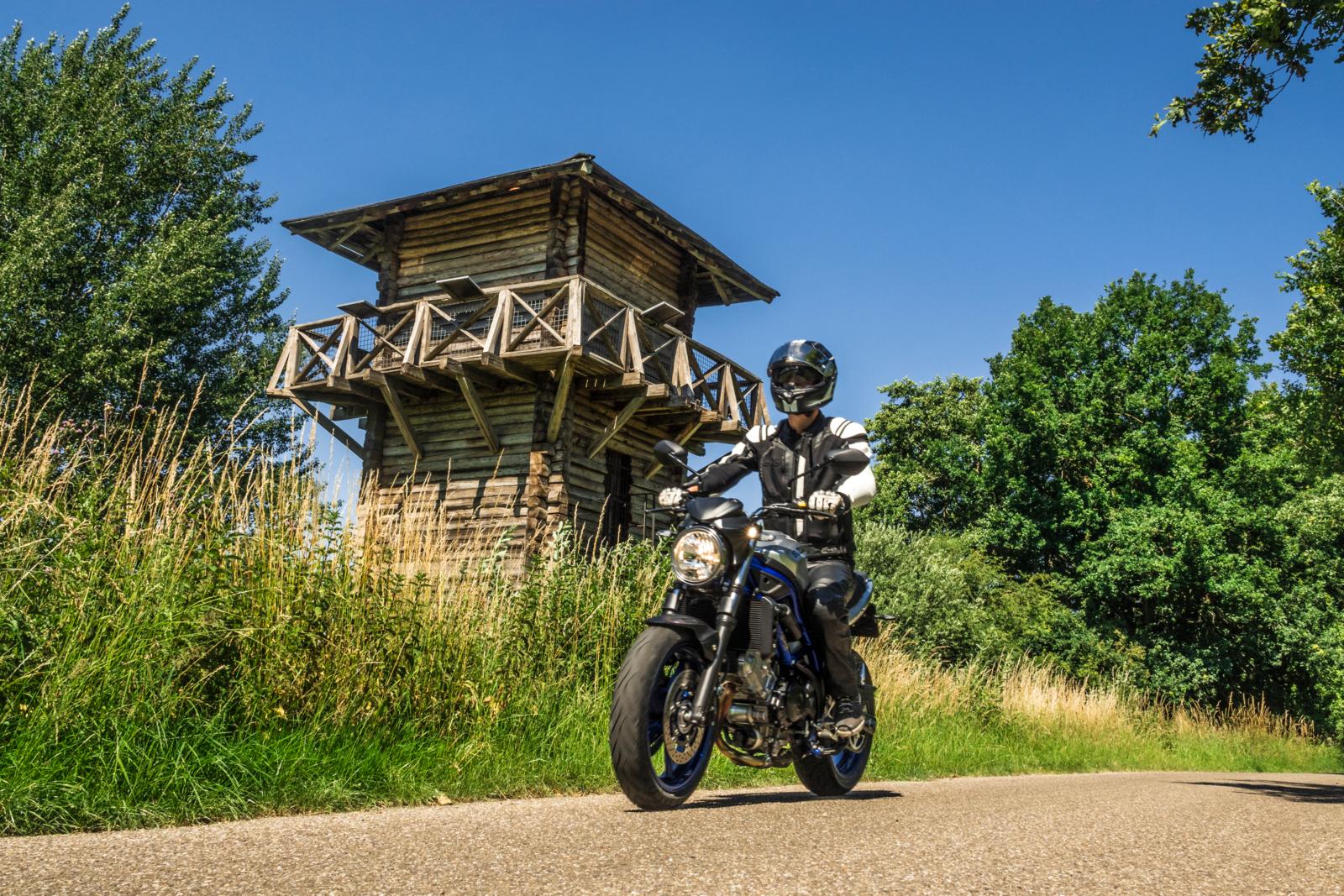 Dat er beugels op de tank van de Z H2 zitten, is niet voor niets. Als Nigel straks voluit accelererend rubbersporen trekt in de Veenslang, kun je als duo maar beter iets in je handen hebben. Nigel denkt er 270 km/u te kunnen halen. Eenmaal op die snelheid moet hij opletten en heel sterk afremmen, anders duikt hij met duo en al zo het struweel van de Ruskenhoek in. Eerder zei hij nog dat hij vlak voor deze bocht eerst ging staan en dan de motor omlegde. Geruststellend liet hij erop volgen dat de duo mocht blijven zitten. Inmiddels gaat de grapjas in volle galop naar de Stekkenwal.