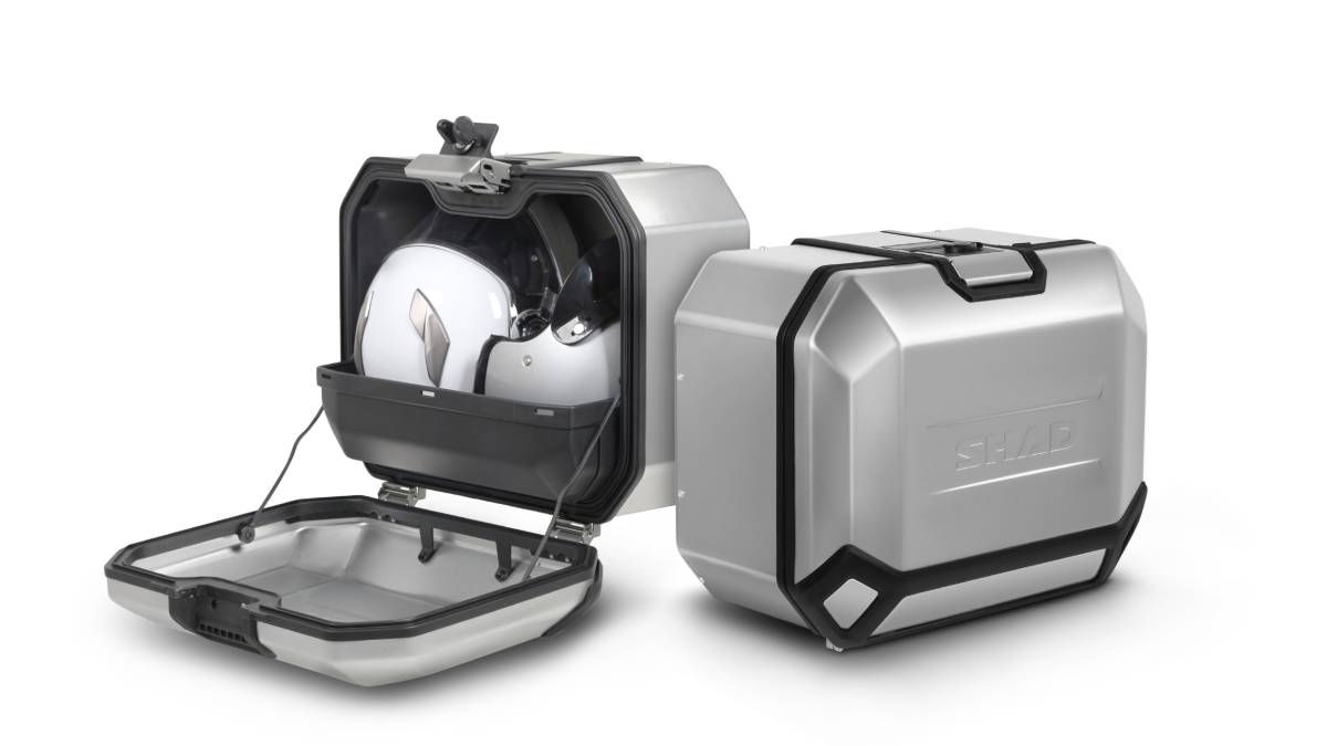Niet minder dan vier koffers lanceert SHAD deze zomer, ieder ontworpen, ontwikkeld en geproduceerd in het SHAD-hoofdkwartier in Barcelona. De TERRA-lijn bestaat uit topkoffers met een inhoud van 37 of 48 liter en zijkoffers van 36 of 47 liter. Om bestand te zijn tegen de meest uitdagende avonturen zijn de koffers uitgevoerd in een lichtgewicht, zeer corrosiebestendige aluminiumlegering. Een van de grootste innovaties van de TERRA koffers is het gepatenteerde dubbele sluitsysteem, waarmee de koffer zich met één hand laat openen en sluiten. De bevestiging van de koffers gebeurt in dezelfde handomdraai dankzij het extra versterkte vierpuntssysteem.