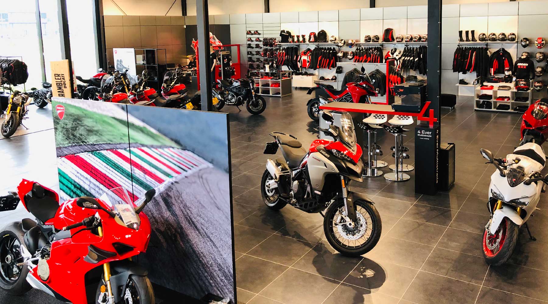Met Ducati Amsterdam heeft onze hoofdstad een representatieve dealer gekregen, passend bij de uitstraling en passie van Ducati. Het team van Ducati Amsterdam beschikt over jarenlange ervaring, aangezien Motortoer al vanaf 2006 Ducati dealer is, in het verleden ook nog met meerdere merken als Moto-Guzzi en Dainese, maar sinds 2020 dus exclusief Ducati. Alles wat het merk te bieden heeft is te vinden in de imposante ruim 400 m2 grote showroom.