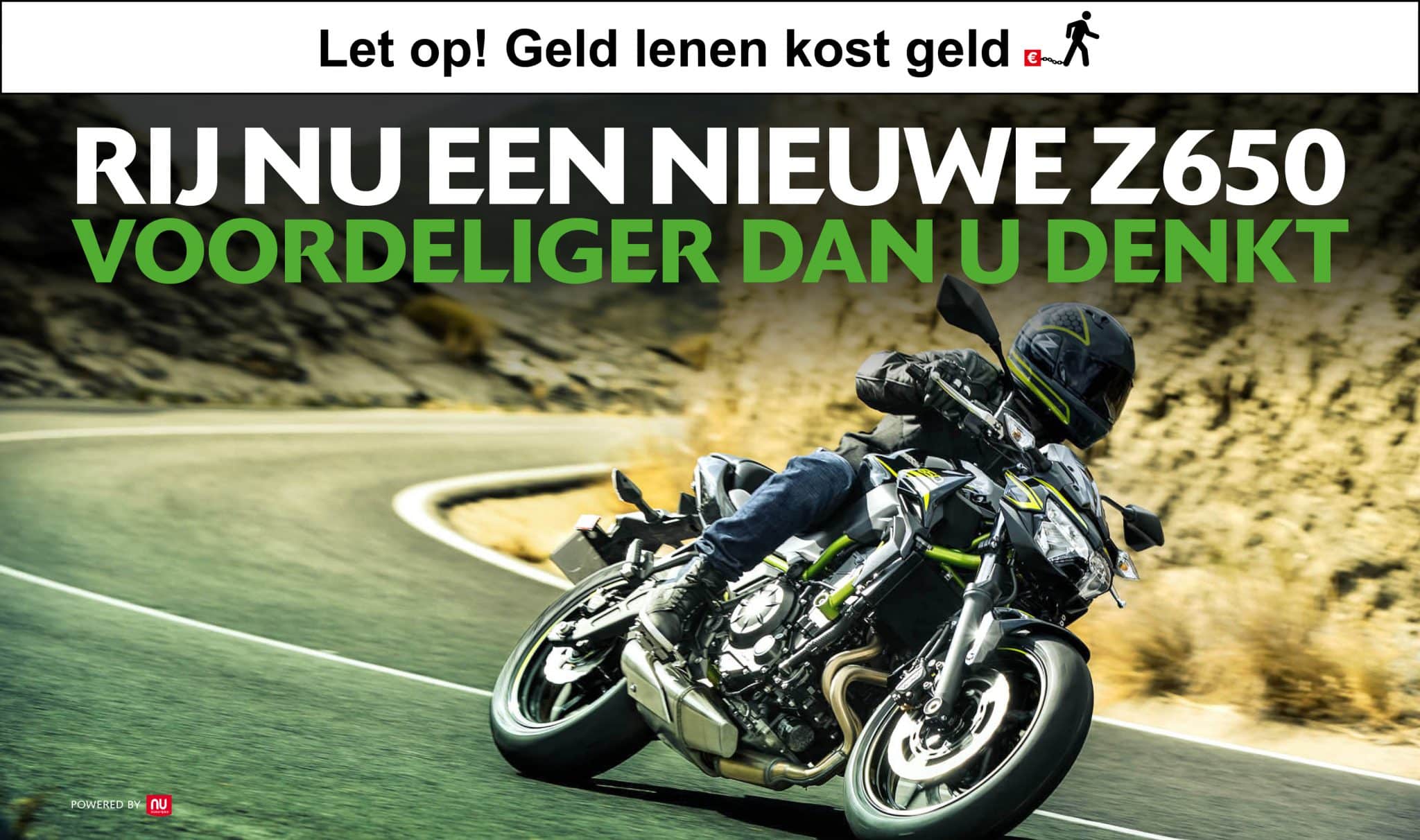 In samenwerking met NUMotorrijden.nl lanceert Kawasaki een unieke financieringsactie waardoor je nu de nieuwe Z650 rijdt voor maar €99,- per maand.*