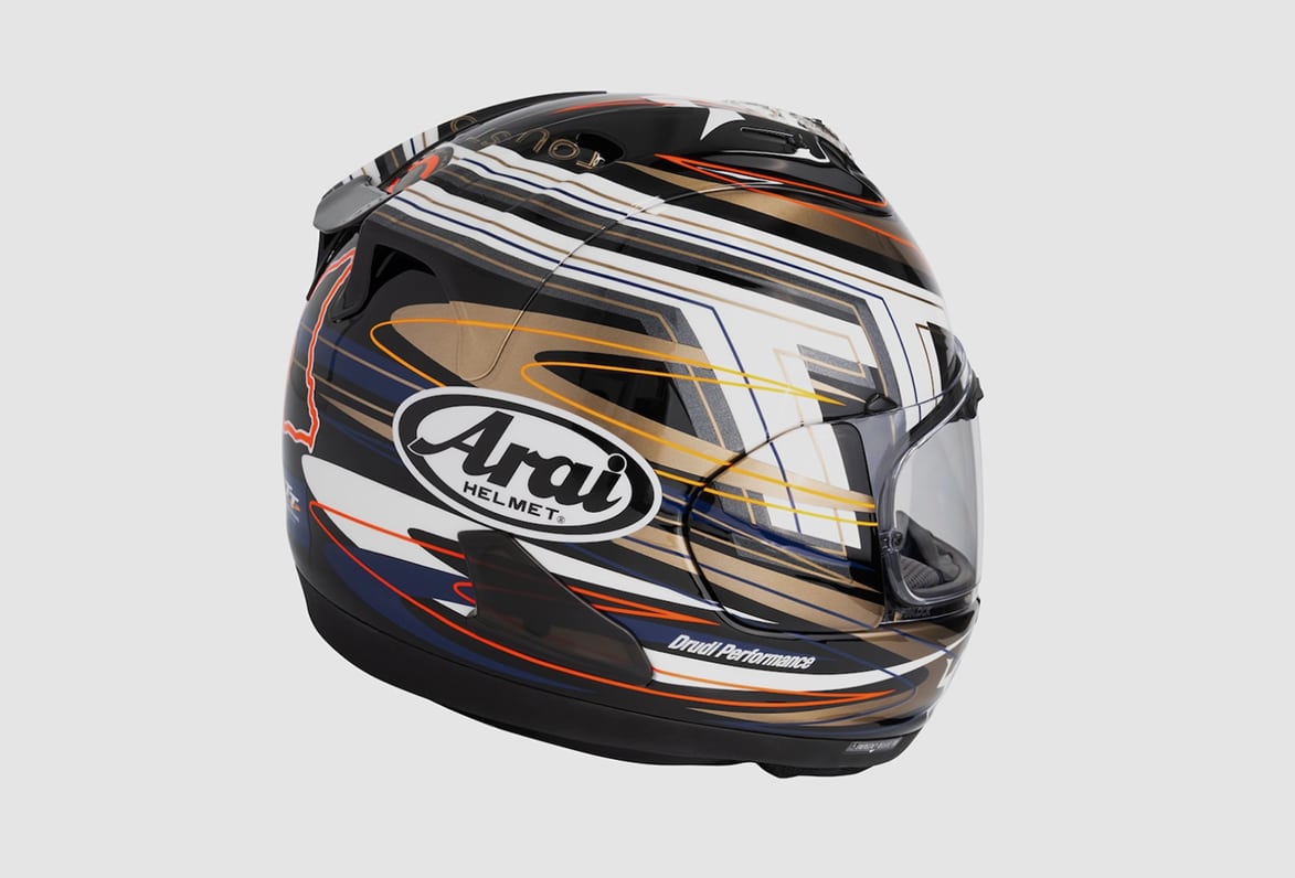 Het uiterlijk van de IoM TT 2026 is ontwikkeld door Drudi Performance, dat al jaren met Arai samenwerkt. Dit is de derde helm die gebruikmaakt van de vernieuwde TT-huisstijl van 2024. Het kleurgebruik verwijst naar zowel de geschiedenis van het event als de moderne uitstraling van de TT. De basis is zwart, wit en goud, met accenten in rood, oranje en blauw. Een groot TT-logo prijkt op de zijkanten, met witte Triskelions op de kin en bovenzijde. Verder is er nog een gouden tekst met ‘Tourist Trophy’ en een Drudi-icoon op de achterkant, met daaronder de rode contour van de 37,73 mijl lange Mountain Course.