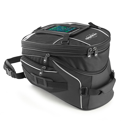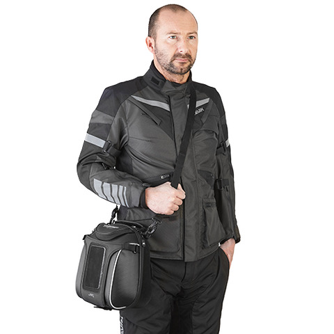 Kappa biedt je de keuze uit vijf tanktassen met het Tanklock systeem. De prijzen variëren €75,- en €129,-. Ze hebben een inhoud van 4,5 tot 18 liter. Met het Tanklock systeem verwijder je in een oogwenk de tanktas van de tankring die rond de tankdop van je brandstoftank is geschroefd. Dus geen geklungel met riemen en haakjes. Gewoon het schuifje verzetten en de tanktas afnemen.