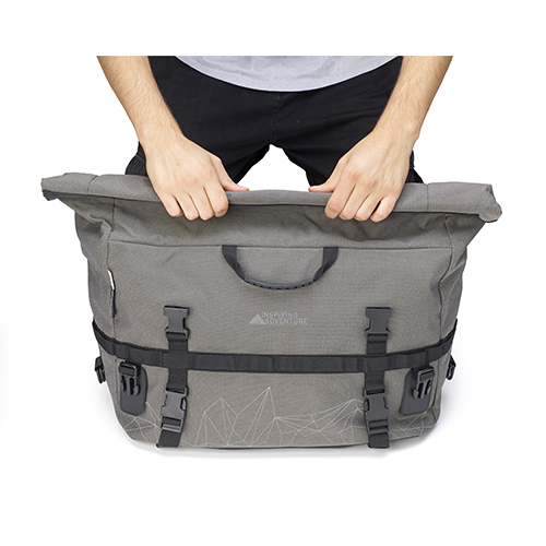MML gebruikt het vormgeheugen van een bepaald soort metaal. Dat is als een staaf aangebracht in de binnenzijde van de soft bag. De tas sluit je door het om te vouwen tot het gewenste punt. Het metaal zorgt ervoor dat het na het omvouwen niet meer afrolt. De tas bevestig je op de achterzijde van je motor met een verstelbare riem.