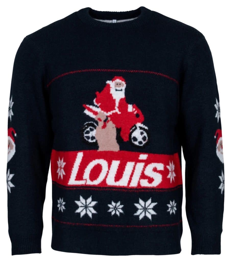 Wil je een cadeau geven dat direct feeststemming brengt? Dan is de ‘Ugly Christmas Pullover’ van Louis de perfecte mix van humor en stijl. Voor onder de kerstboom, tijdens het kerstdiner of gewoon voor die motorrijder met het nodige lef. Verkrijgbaar in de maten XS tot 3XL, in donkerblauw met – eh – lelijke print.