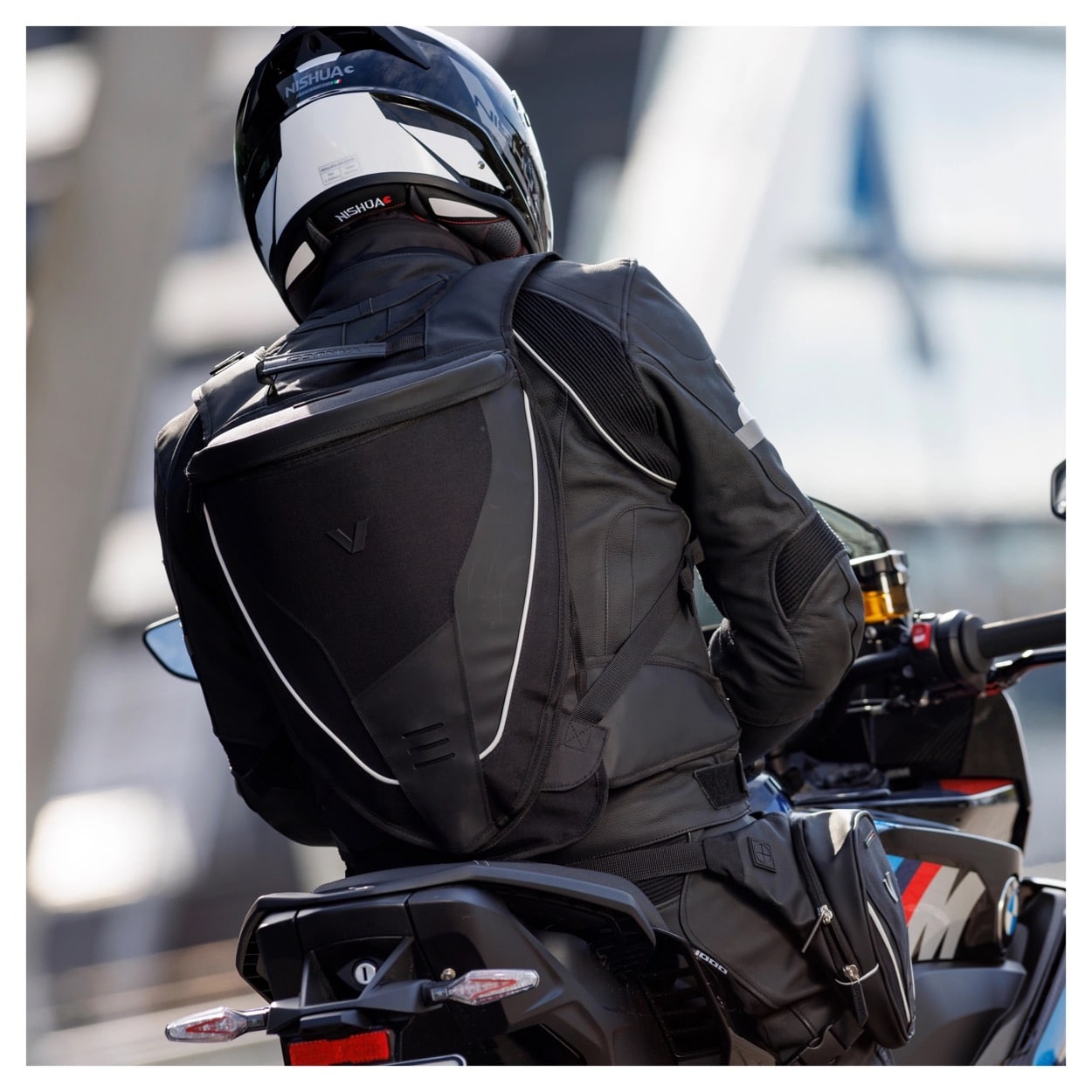 Perfect voor woon-werk, ritten, citytrips of het verstoppen van lastminute kerstcadeautjes. Deze rugzak zit strak op de rug, heeft handige vakken én overleeft regenbuien beter dan de meeste feestkapsels. Hij is gevormd zoals de ‘speed hump’ op je racepak voor een stoere look, is voorzien van een vak voor een (optionele) rugprotector en komt standaard met een regenhoes voor de druilerige dagen.