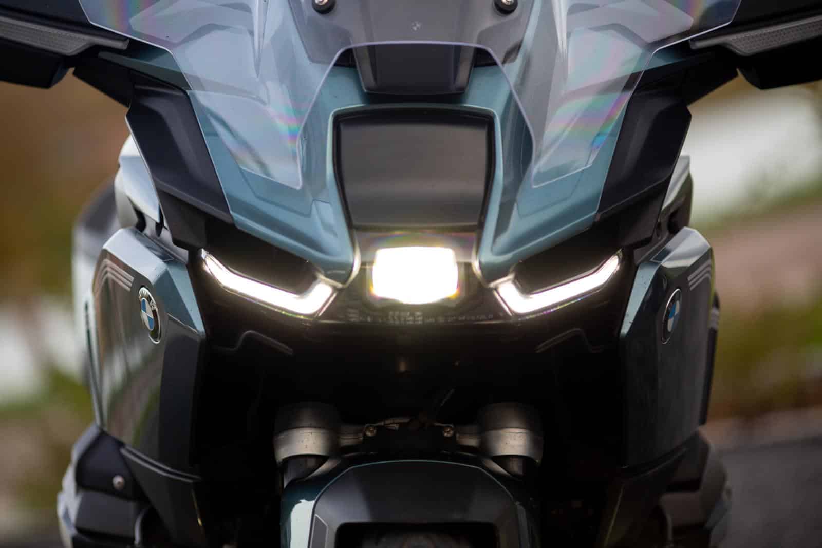 Met het grootlicht aan worden de verschillen duidelijker. De Yamaha heeft een hele krachtige lichtstraal die superhelder en superver reikt. Het grootlicht van de BMW verlicht ongeveer alles wat je voor je kunt zien; ver, kort, laag, hoog, links, rechts, onder, boven. Dat dit allemaal uit dat ene centrale oog komt, is te gek voor woorden. Waar de Yamaha dus meer helderheid heeft, is het verlichte oppervlak van de BMW groter en breder, met – voor alle duidelijkheid – ook een indrukwekkende helderheid.