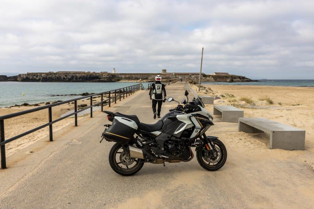 In de vorige afleveringen van deze vierdelige reeks las je al hoe we naar het Finse Virmajärvi, het uiterste oosten van Europa, en verder glibberden naar de Noordkaap, het uiterste noorden. Tijdens de rit naar het uiterste zuiden bij de Spaanse kustplaats Tarifa was het gelukkig gedaan met de vrieskou. En hoe gedroegen de Kawasaki Versys 1100 en de Bridgestone T33’s zich eigenlijk?