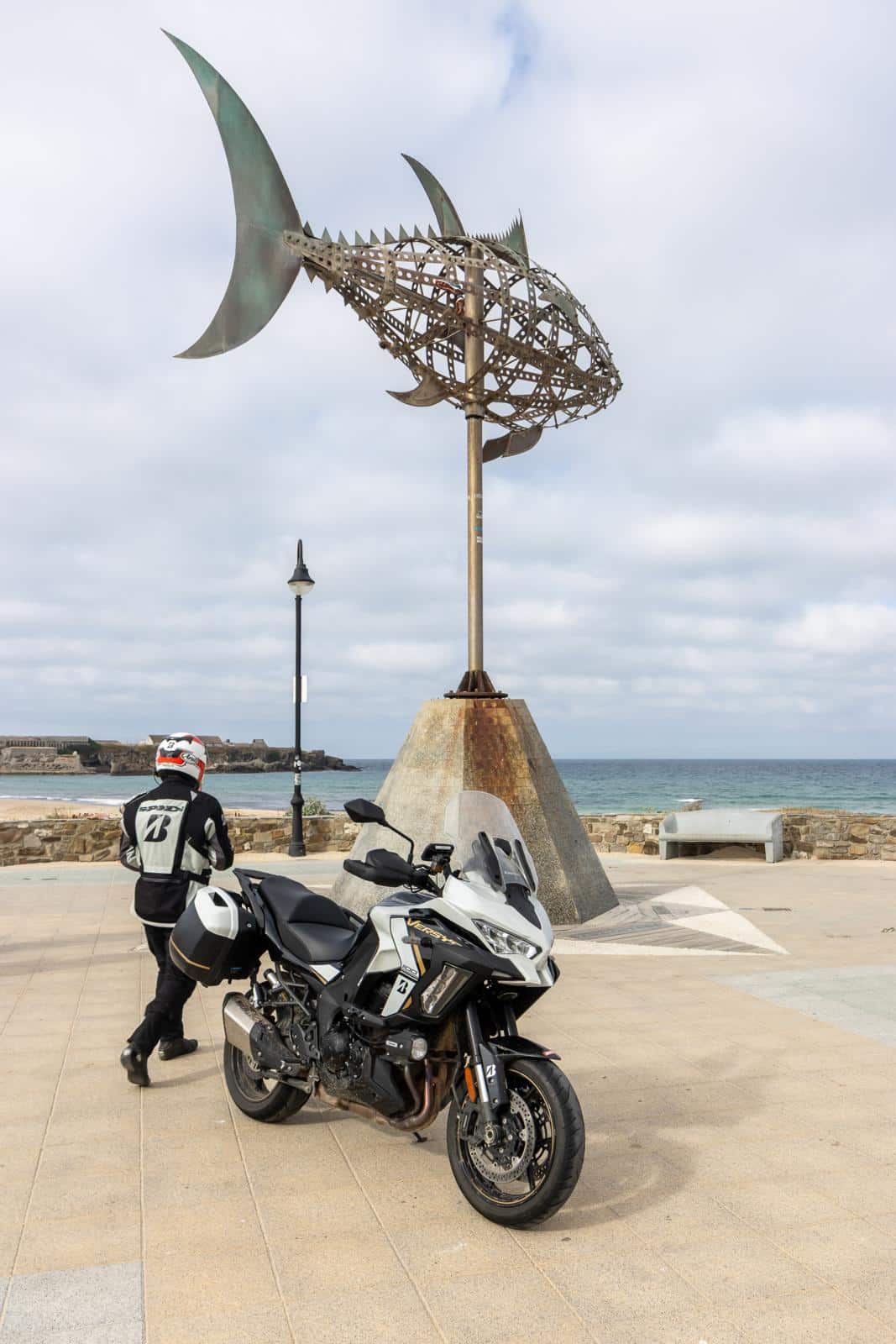 In de vorige afleveringen van deze vierdelige reeks las je al hoe we naar het Finse Virmajärvi, het uiterste oosten van Europa, en verder glibberden naar de Noordkaap, het uiterste noorden. Tijdens de rit naar het uiterste zuiden bij de Spaanse kustplaats Tarifa was het gelukkig gedaan met de vrieskou. En hoe gedroegen de Kawasaki Versys 1100 en de Bridgestone T33’s zich eigenlijk?
