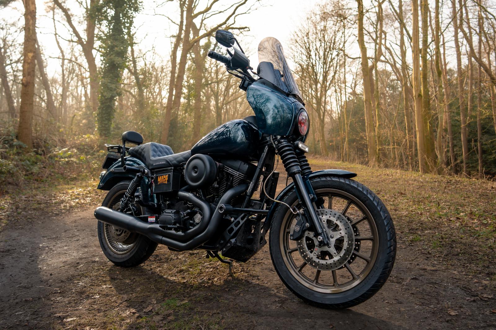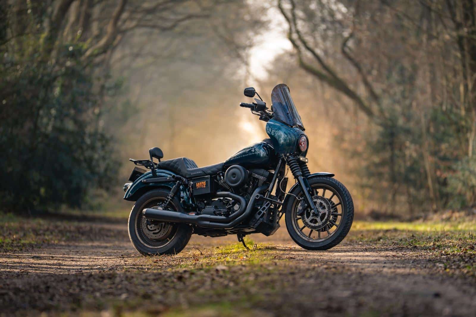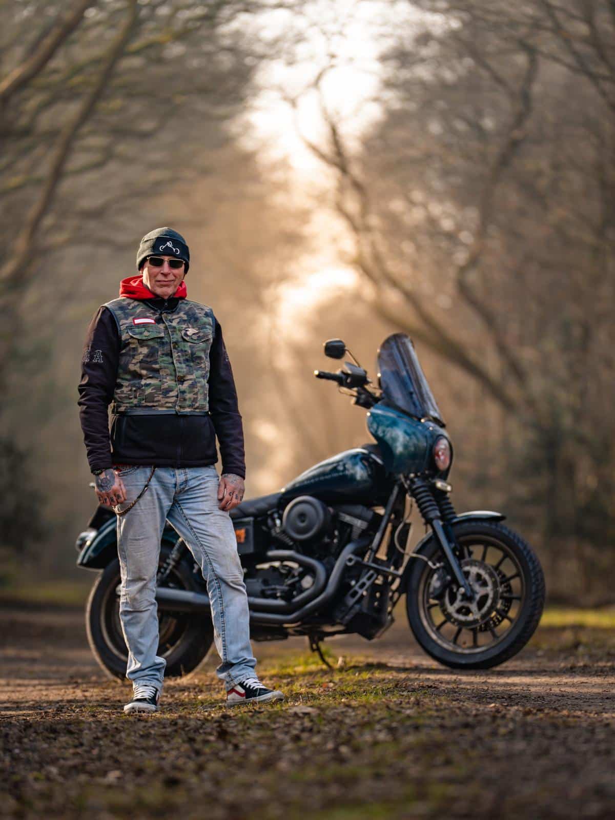 Het diepe gebulder zwelt aan. Nick rijdt het bos in, zet zijn Dyna neer en stapt af. “Godverdomme wat is het koud”, zegt hij. Dan wijst hij naar de weg. “Maak effe plek, m’n dochter Mickey komt eraan met de pick-up.” Even later staat er een GMC Sierra StepSide strak naast de Dyna, alsof het zo hoort tussen de Range Rovers, Volvo’s en een verdwaalde Jaguar. Nick duwt zijn motor het bospad op en zet hem pontificaal in het midden, twee wielrenners fietsen ons tegemoet en eentje begint meteen al te klagen dat de motor in de weg staat. Nick lacht en zegt; “Laat ze lullen, de zeikers”. Terwijl ik om de motor heen loop komt er een ouder stel langs. De man blijft staan, knikt goedkeurend en zegt dat het een mooie motor is, vast nieuw en nu snel foto’s maken. Nick lacht en zegt dat hij ’m al drieëntwintig jaar heeft en er bijna 240.000 kilometer mee heeft gereden door heel Europa. “En deze gaat nooit meer weg”, zegt hij er rustig achteraan.