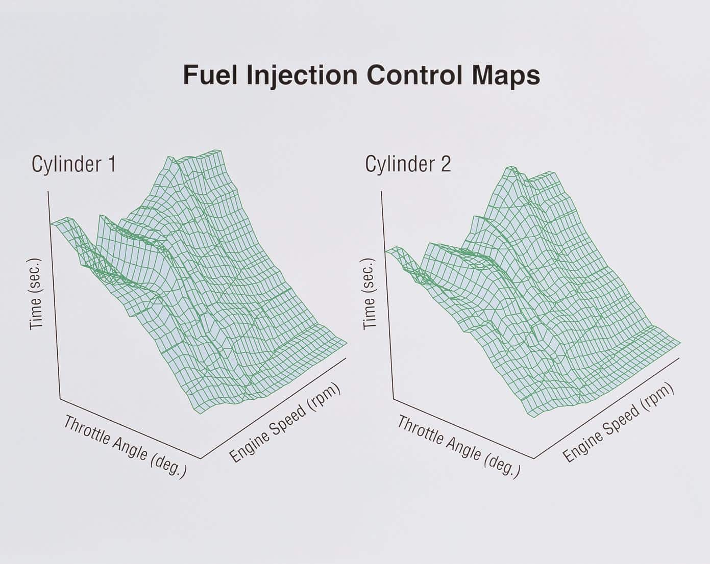 Voor het bepalen van het injectiemoment en de inspuitduur maakte de computergestuurde injectie gebruik van diverse sensoren: een krukassensor voor het toerental, een nokkenassensor voor het bepalen van de inspuitvolgorde, een gasklepsensor voor het bepalen van de gasklepstand en een MAP-sensor om de onderdruk in het inlaatspruitstuk te bepalen. Aan de hand daarvan werd een ‘mapping’ gemaakt, een driedimensionale database waarmee de Electronic Control Unit, de besturingscomputer, het juiste inspuitmoment en de juiste inspuitduur, alsmede het ontstekingsmoment kon bepalen. Dat werd dan nog bijgestuurd aan de hand van temperatuursensoren – een voor de motortemperatuur en een voor de inlaatluchttemperatuur – en aan de hand van de lambda-sensoren, zodat het mengsel beurtelings arm en rijk kon staan, een voorwaarde om de driewegkatalysator goed te laten werken. Je ziet in de praktijk dat injectiesystemen de norm werden. De Yamaha Fazer 600 had in 1998 oorspronkelijk carburateurs, zijn opvolger, de FZ6, kreeg in 2004 injectie. De systemen werden ook steeds geraffineerder: de Honda CBR600RR had al sinds 2003 injectie, maar kreeg in 2007 een PGM-DSFI-systeem. De KTM 950 Adventure met carburateurs werd in 2007 vervangen door een 990 Adventure met injectie.