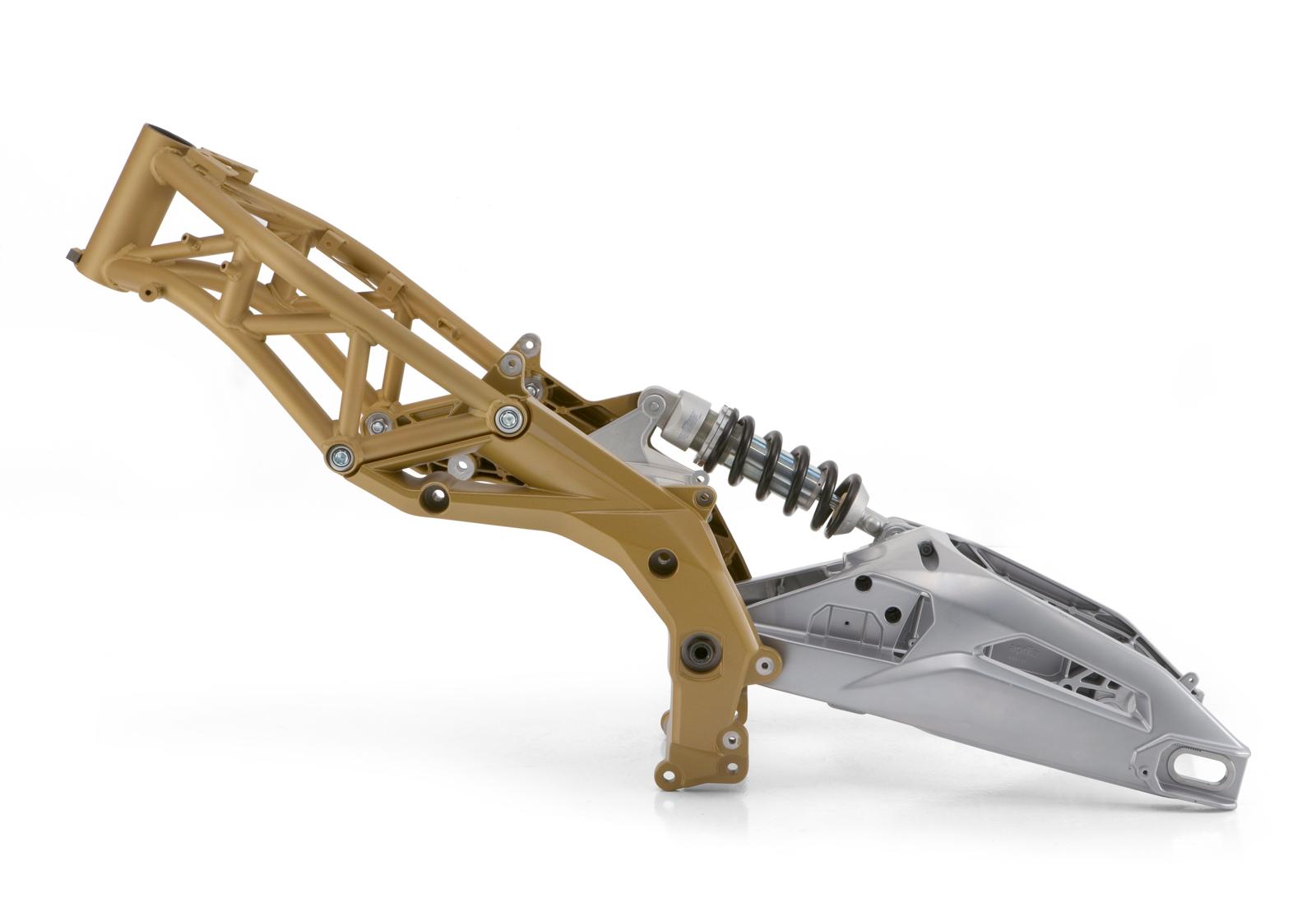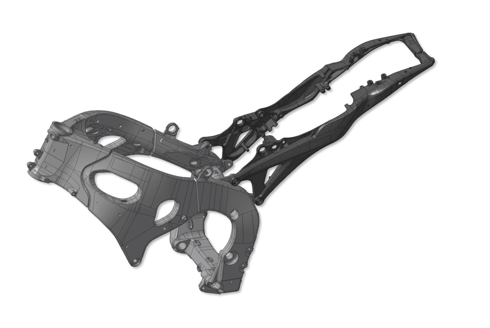 Ook chassis en vering evolueerden sterk. Aluminium brugframes bleven dominant in het sportieve segment, maar werden steeds verfijnder. Yamaha experimenteerde bijvoorbeeld met een gecontroleerde flexibiliteit in het frame van de R1, om meer feedback en controle te geven aan de rijder. Ducati ging een andere weg met de 1199 Panigale door het traditionele vakwerkframe te verlaten en het motorblok als dragend deel te gebruiken, iets wat BMW al deed vanaf de eerste R1100RT. Kawasaki bracht de ZZR1400 uit met een monocoque-frame, een soort stalen doos, zoals ze die ook al op de ZX-12R hadden, in 2000. Daarnaast waren er exoten. Aprilia bouwde hybride frames op de Shiver in 2007 en de Mana in 2008. Dat was een frame dat deels een stalen vakwerkframe was, deels aluminium schetsplaten. Yamaha kwam in deze periode met een unieke ‘CF Diecast’-frameconstructie, onder andere op de FZ6 van 2006: het frame bestond uit twee delen van spuitgietaluminium, die aan elkaar waren geschroefd. Op veringsgebied verschenen rond 2013 de eerste semi-actieve systemen, zoals Ducati’s Skyhook Suspension op de Multistrada en BMW’s Dynamic ESA op de R1200GS. Deze systemen pasten demping automatisch aan op rijstijl, belading en wegdek.