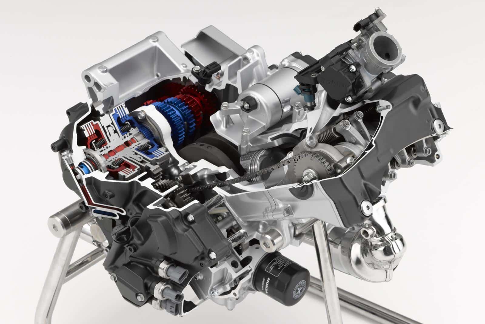 Honda tilde haar op verstand gerichte koers in 2012 nog naar een nieuw niveau met de NC700-serie. Vaak wil een fabrikant indrukwekkende vermogenscijfers laten zien en wordt het motorblok dus zodanig getuned dat hij zijn trekkracht in hoge toerenregionen levert. Dat gaat meestal ten koste van de trekkracht bij lage toerentallen, die je rijdt wanneer je normaal door het verkeer rijdt. Honda deed hier onderzoek naar en kwam tot de ontdekking dat motorfietsen voor 90% bij snelheden onder de 140 km/u worden gebruikt, terwijl 80% met minder dan 6.000 tpm wordt gereden. En dus achtte Honda het slim om eens een motorblok te ontwerpen dat zijn trekkracht juist daar levert waar het nut heeft. En niet alleen omdat dat prettiger rijdt, maar ook omdat dat zuiniger is. Een motor werkt bij deellast thermodynamisch het efficiëntst bij toerentallen die net onder het toerental van het maximumkoppel liggen. Bij lage toerentallen zijn er ook nog minder mechanische verliezen. De NC – leverbaar als scooter (Integra), allroad (NC700X) en naked (NC700S) – had maar 48 pk, maar wel een koppel van 60 Nm bij 4.750 tpm, ongekend laag voor een motorfiets. En hij liep 1:27. Bijzonder was toen dat de krukas 90° verdraaide kruktappen had, waardoor de tweecilinder lijnmotor een ontstekingsinterval van 270°-450° had, iets wat de meeste tweecilinder lijnmotoren tegenwoordig hebben. Opvallend is dat de NC-serie ook met DCT leverbaar was.