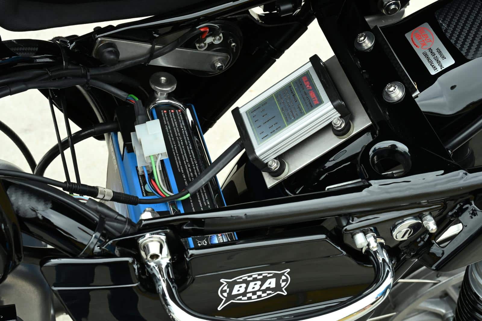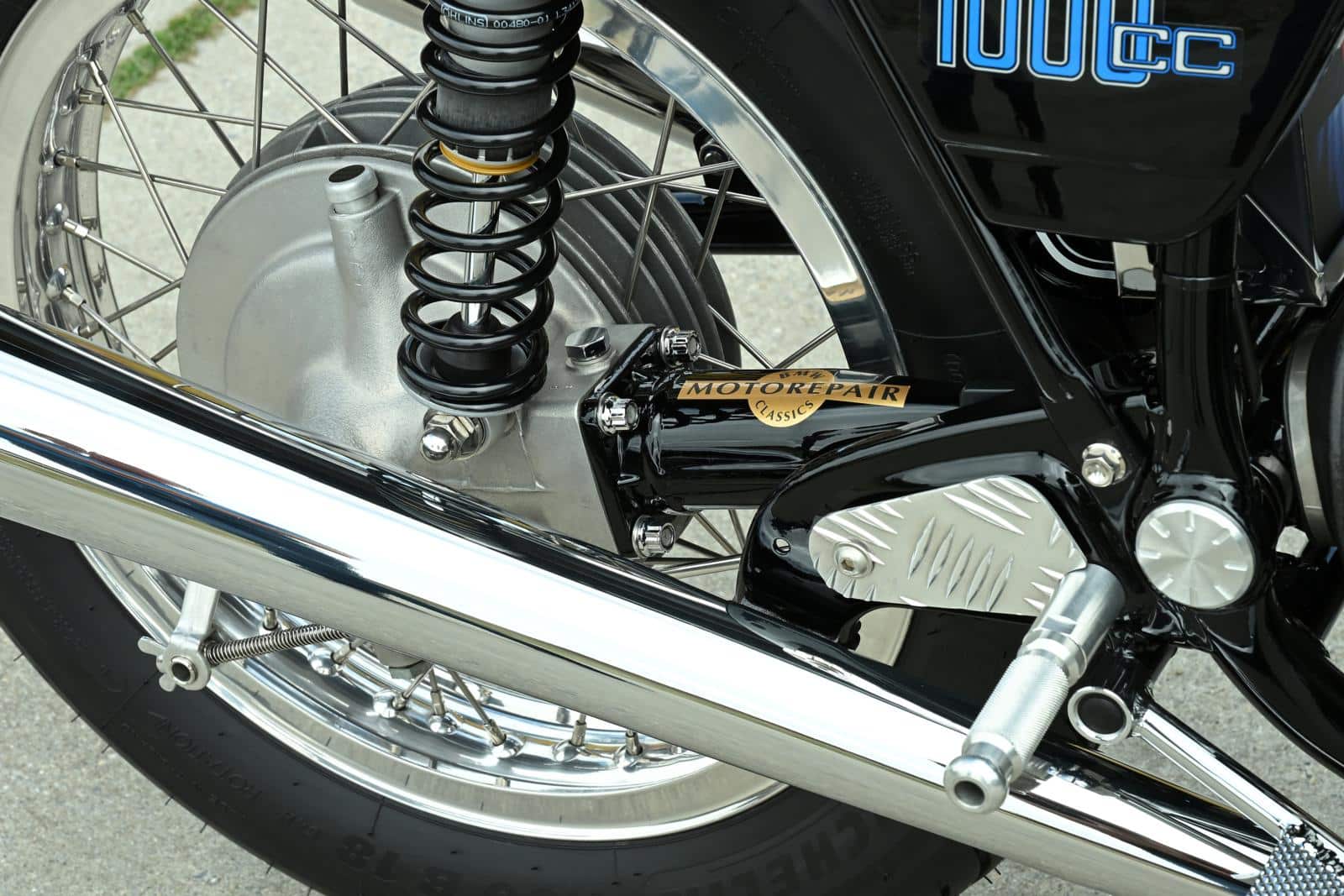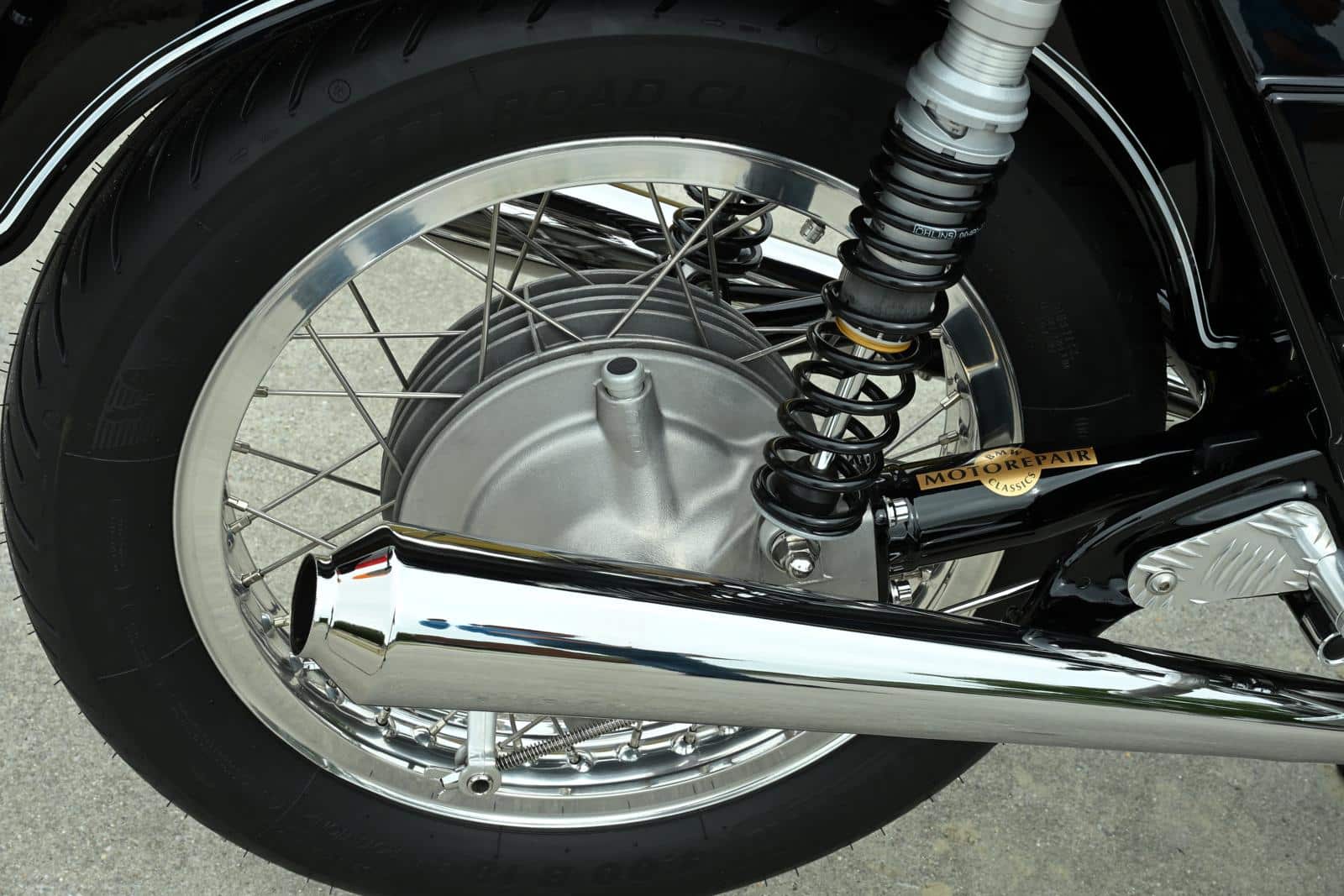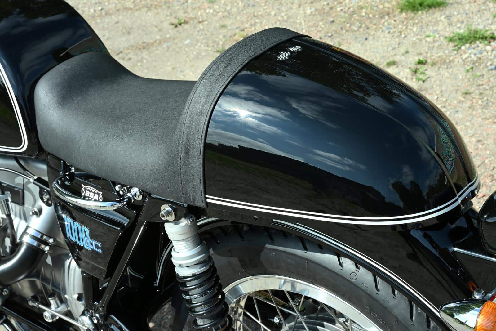 Steven vervolgt: “De voormalige eigenaar heeft zijn ganse carrière in de matrijzenbouw gewerkt en zes jaar aan de boxer gesleuteld. Elk boutje werd door hem conisch afgedraaid en verchroomd. De details zijn werkelijk fenomenaal. Ook het motorblok werd grondig onder handen genomen en volgens het meegeleverde dossier werden daar nogal wat bankbiljetten tegenaan gekletst. Zo werd de motor getuned bij ‘Motoren Israel’ in Neuhaeusel. Daar zijn ze gespecialiseerd in het reviseren van BMW boxermotoren.” Het motorblok heeft twee bougies per cilinder. Door de dubbele ontsteking heeft de krachtbron minder last van ‘pingelen’ en het brandstofmengsel wordt gelijkmatiger verbrand. De grote Wossner zuigers wegen een pak minder dan de originele pistons en ook de Siebenrock drijfstangen zijn lichter dan hun standaard versies. Beide cilinderkoppen zijn geflowed en de krukas is net als het vliegwiel lichter gemaakt en uitgebalanceerd. De in- en uitlaattrajecten werden vergroot. Voor de carburatie werden de originele 40 mm Bings behouden, maar de sproeierbezetting groeide van 170 naar 185. De van 2.25 tot 3.5 liter vergrote carterpan en Siebenrock oliekoeler zorgen er voor dat de thermische toestand beter onder controle blijft. Op de Morad spaakvelgen, die iets breder zijn dan de originele Weinmann exemplaren, kunnen bredere banden gemonteerd worden. De Michelin sloffen hebben een passend, klassiek profiel. Met de aangepast Rennsport verhoudingen liggen de versnellingen van de originele 5-bak iets korter op elkaar. Door de motorische upgrade klimt de motor sneller in hogere toerentallen, terwijl het standaard vermogen van 70 naar een zeer fatsoenlijke 90 pk aan het achterwiel steeg.