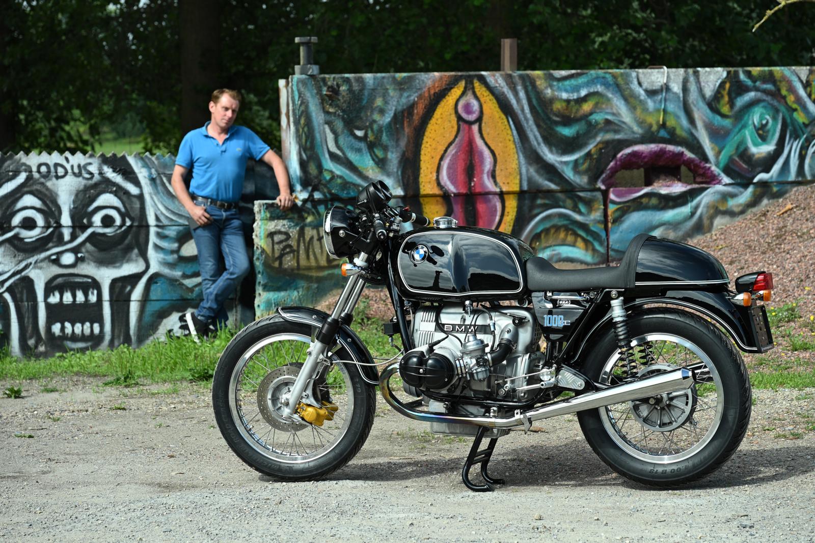 Steven vertelt: “Via mijn restauratie projecten heb ik de Nederlander Theo Terwel leren kennen. Theo runt in Vorden een motorspuiterij die befaamd is om zijn authentieke lakwerk voor klassieke BMW motoren. Hij is gespecialiseerd in het spuiten van de legendarische metallic R90S Daytona Orange en Red Smoke kleurstellingen. De pinstriping wordt handmatig met originele bieslak en penseel aangebracht, waardoor de afgewerkte machines vrijwel identiek zijn aan de in de jaren ’70 van de band gerolde machines. Theo heeft voor mij al een behoorlijk aantal motoren gelakt en in de Oktoberhallen, waar hij op Moto Retro Wieze een standje heeft, breng ik hem steevast een bezoekje. Hij had me op voorhand reeds gebeld dat hij een prachtig gerestaureerde R100RS van een Duitse klant zou meebrengen. De eigenaar had er zes jaar minutieus aan gesleuteld, maar omwille van oprukkende artrose deed de 72-jarige man de caféracer met pijn in het hart van de hand. Ondertussen had hij zijn ding gevonden in een moderne, veel comfortabelere BMW. We maakten een overeenkomst dat ik de RS zou doorverkopen en bij gelegenheid zou Theo de motor wel ‘effe binnengooien’ in Markegem. Na de aflevering en een grondige visuele check, besloot ik voor de zekerheid een proefritje maken. De boxer zoemde bijna letterlijk als een bijtje en mijn hart ging meteen overstag. Zo’n pareltje mocht ik me verdomme toch niet laten ontglippen! De caféracer is hier uiteindelijk niet buitengeraakt, want ik heb de verkoop geannuleerd. Deze onvermijdelijke, impulsieve beslissing heb ik veiligheidshalve niet onmiddellijk aan mijn vrouwtje meegedeeld, want ik heb inmiddels zowat zestien motoren in mijn collectie”, lacht Steven.